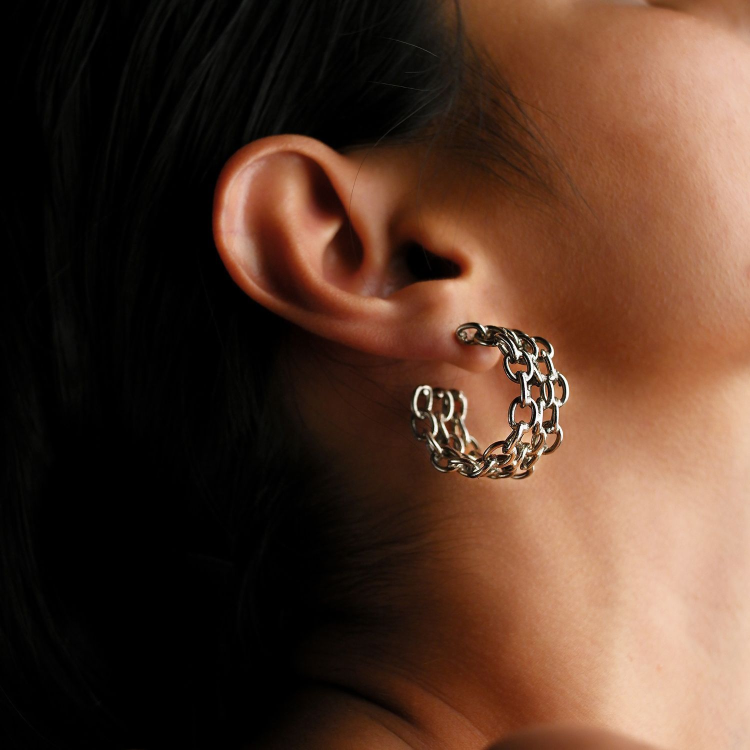 Looking to step up your fashion game? Check out our naaz hoops! Made with silver-plated brass, these earrings are versatile for any event or activity. Plus, the push-back closure guarantees comfort and security for a worry-free day. So, why wait? Elevate your style now!