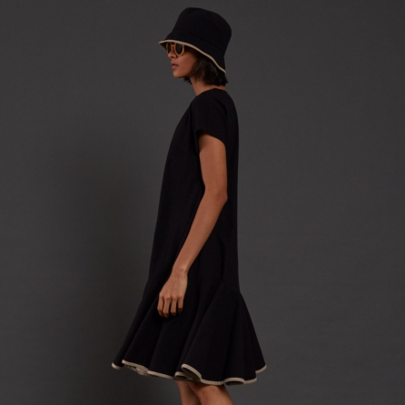 Make a bold statement with this navy blue dress. Made from exquisite upada silk. This navy blue masterpiece is fitted around the waist. Featuring a yellow pop printed draped dress. Experience pure sophistication every time you slip into pooja bagaria.