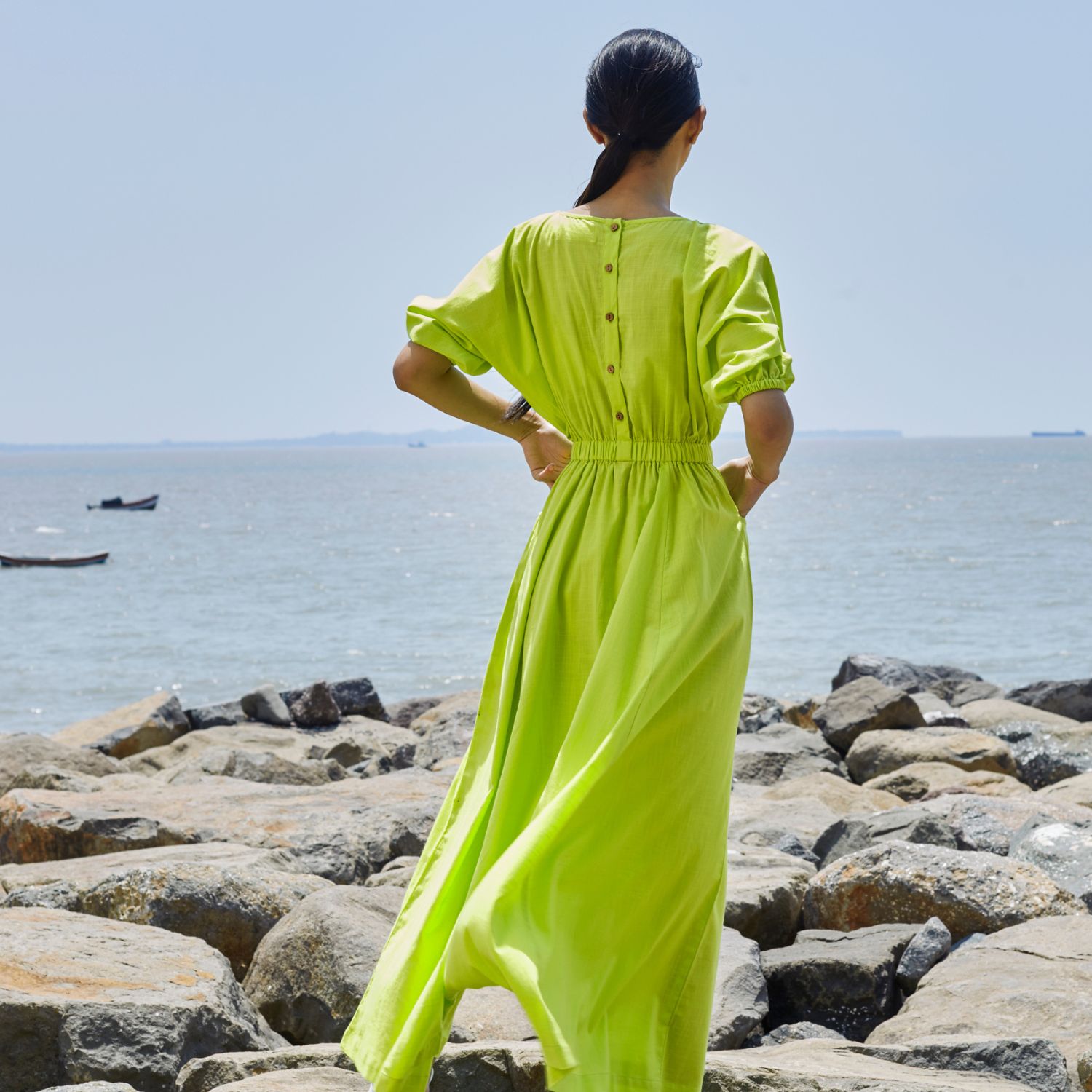 ₹ 8,500 (5% off)Experience ultimate comfort and style with this versatile neon green jumpsuit. Designed with a back button closure for easy wearing, it features a drop crotch bottom that adds a modern touch. Complete with practical pockets, this jumpsuit combines functionality and fashion, making it the perfect choice for effortless everyday chic.