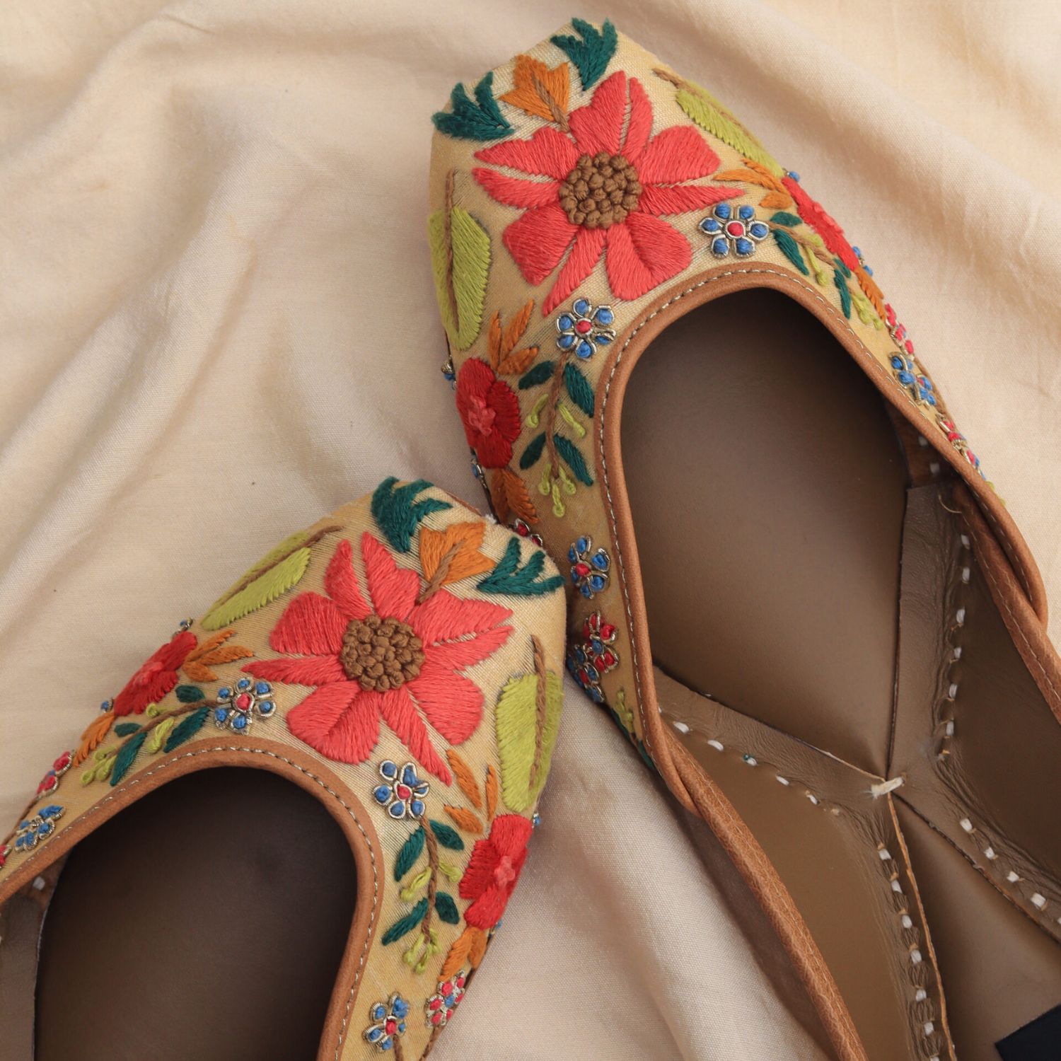₹ 3,900 (10% off)Introducing this bestseller, nature-inspired elegance.The perfect fusion of rich silk fabric, intricate thread embroidery, and a hint of zardosi, meticulously crafted by skilled artisans. Embrace the vibrant colors with these statement shoes.