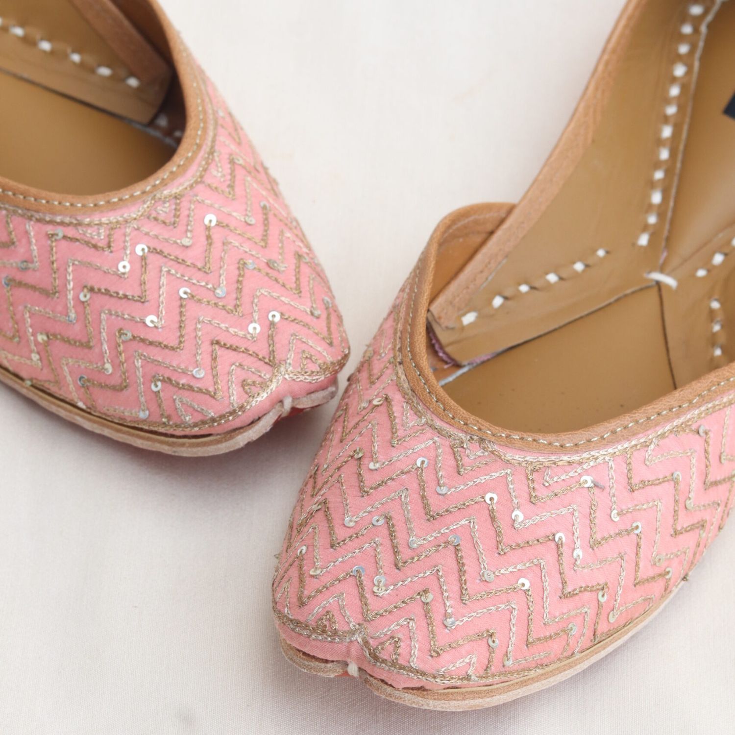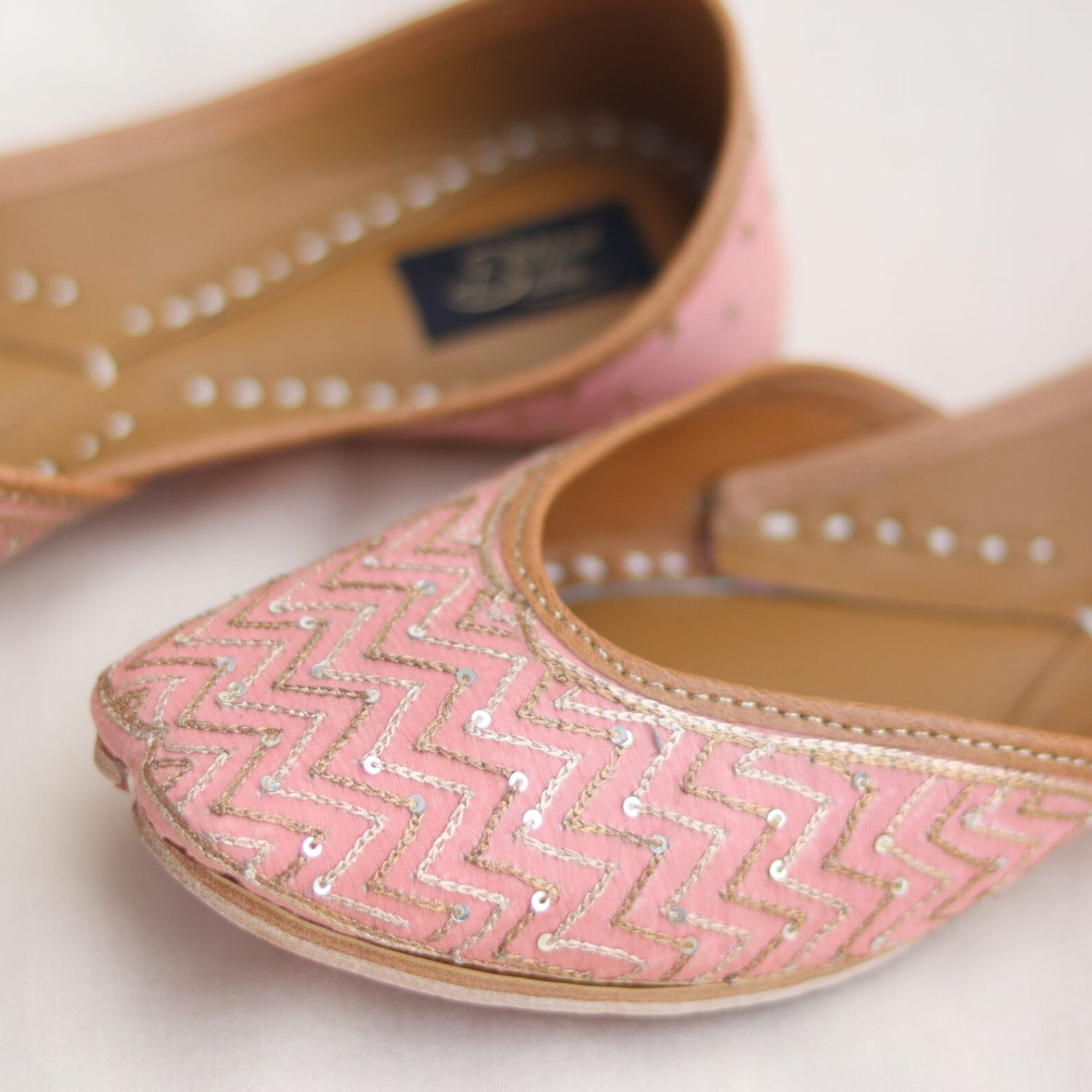 ₹ 3,000 (10% off)These summery pastel pink juttis are perfect for the festive season. Adorned with mesmerizing geometrical patterns of tikki and zardosi thread, these juttis are simply awe-striking. Embrace the nostalgia and elegance of this enchanting design.