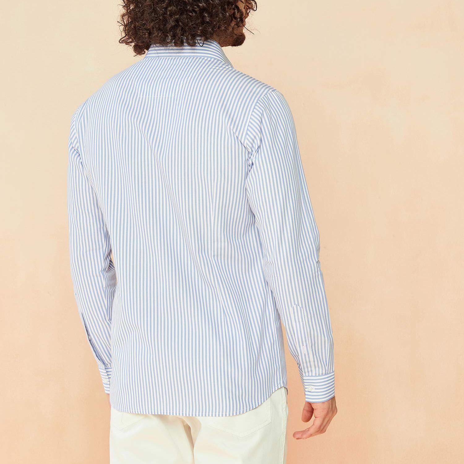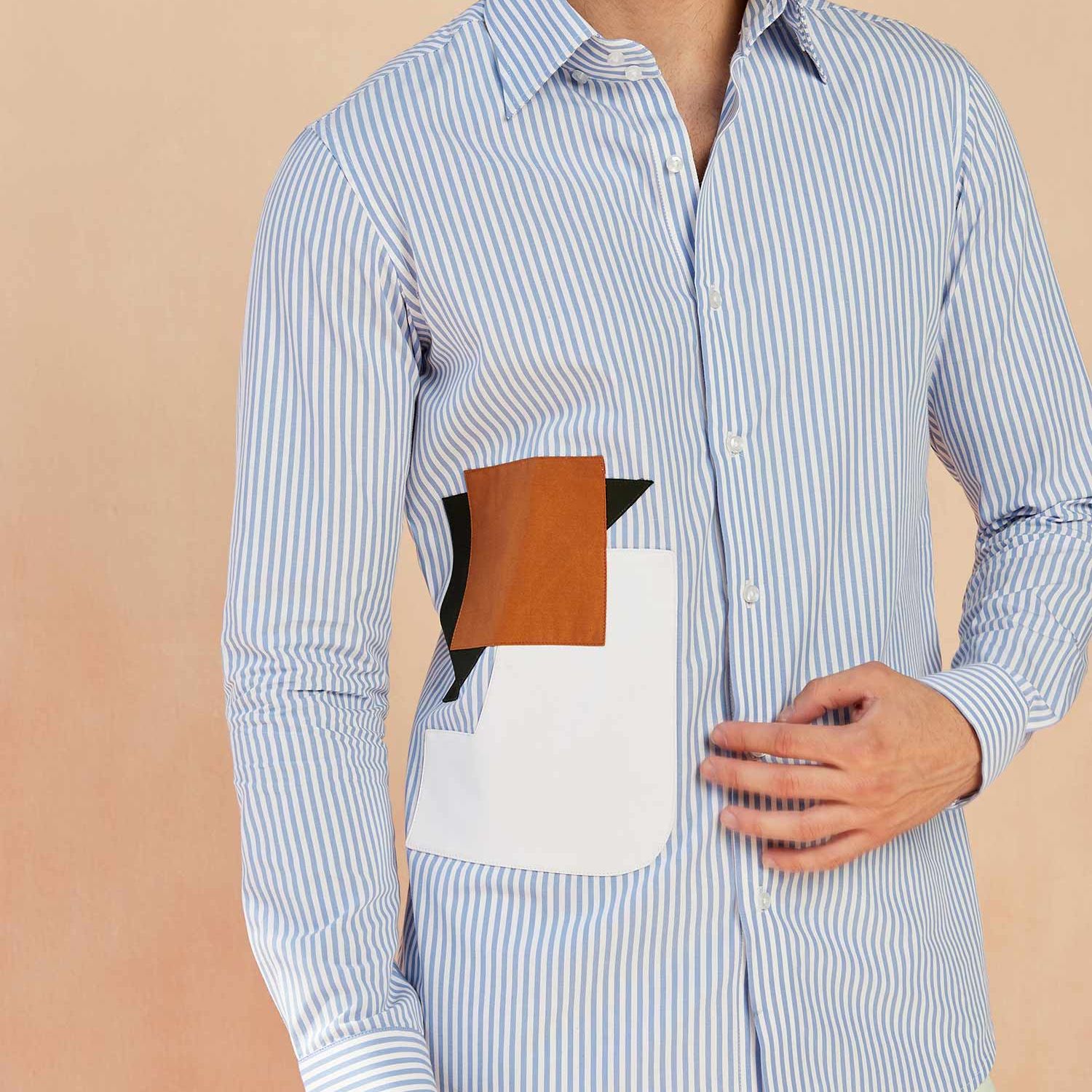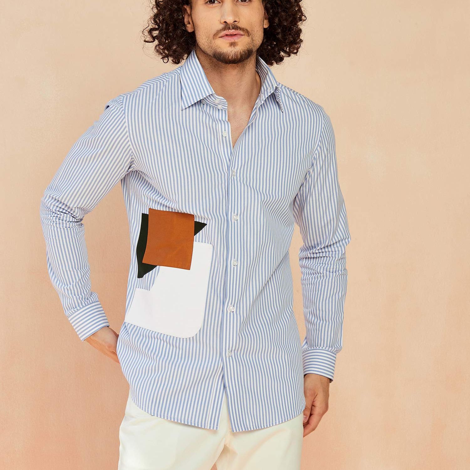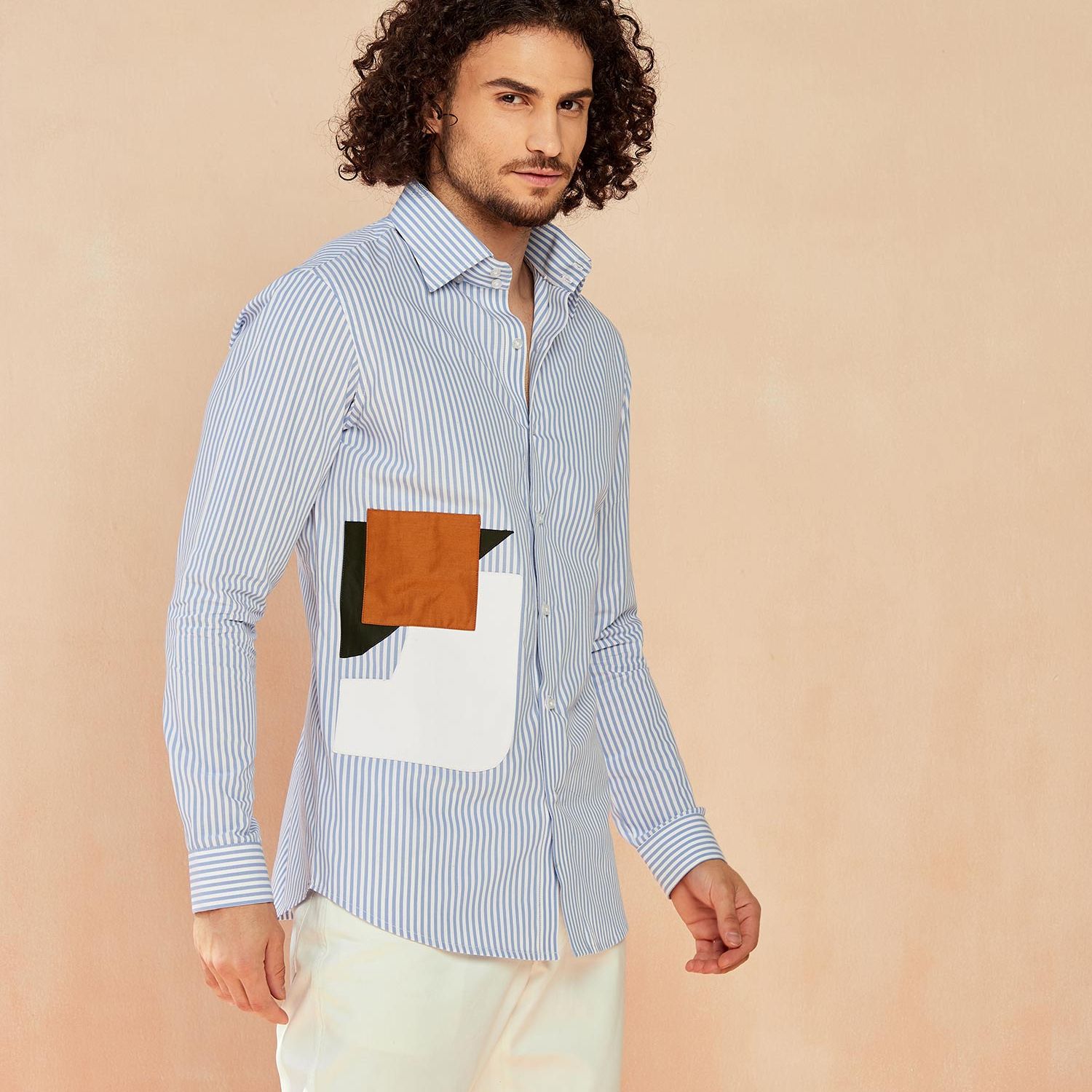 Inspired by the iconic painter, this piece combines artistic flair with contemporary fashion. The Picasso outfit features a classic blue stripe pattern, exuding a timeless and sophisticated look. Crafted from premium cotton sateen fabric, this shirt offers a luxurious feel and a polished appearance.