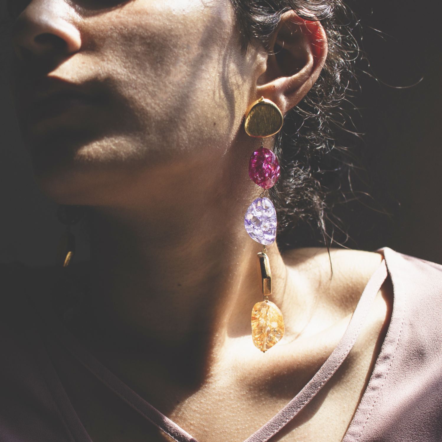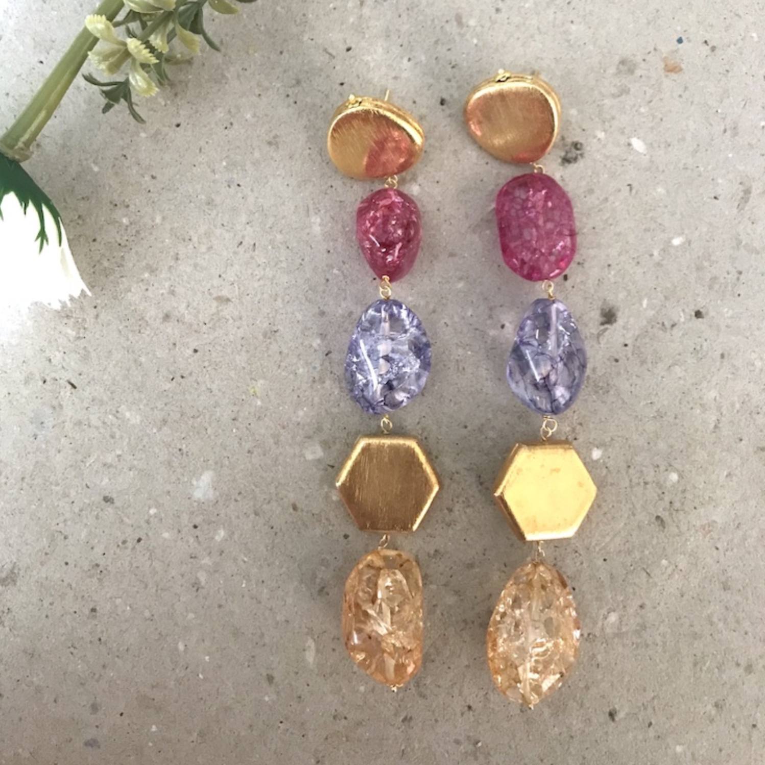 Elevate your style with this vibrant spectrum of these rainbow earrings. Handcrafted from semi-precious stones, these earrings add a sparkle to every look, drawing attention to your face with a riot of playful colours. Whether you’re attending a formal event or a night out.