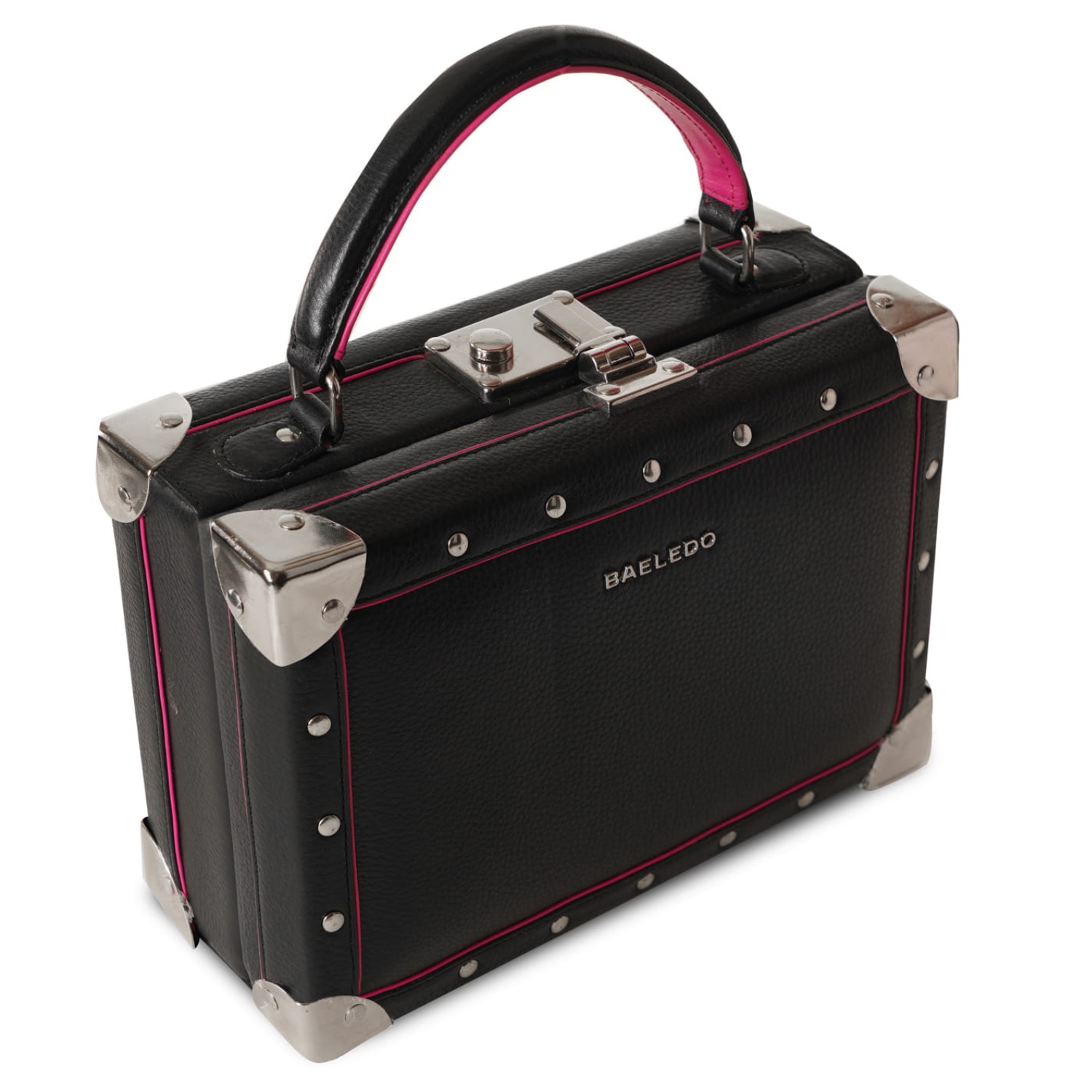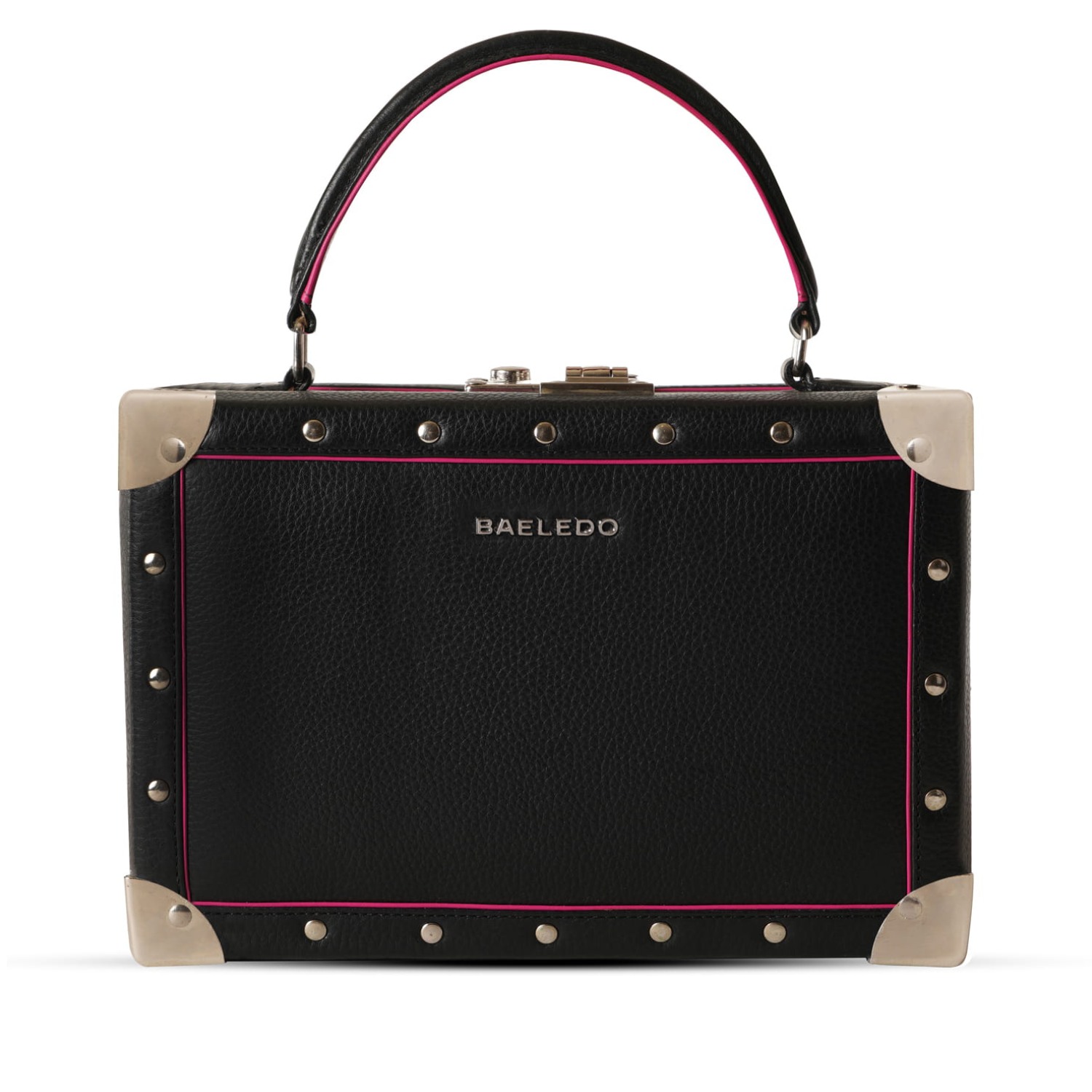 ₹ 12,450 (15% off)The prato box bag brings luxury and utility to a captivating design. Crafted from high-quality leather and decorated with metal rivets with contrast piping, this mini briefcase-style bag provides a chic, sophisticated look that perfectly fulfills your everyday needs. With an adjustable top handle and extendable strap, you can carry it however you like.
