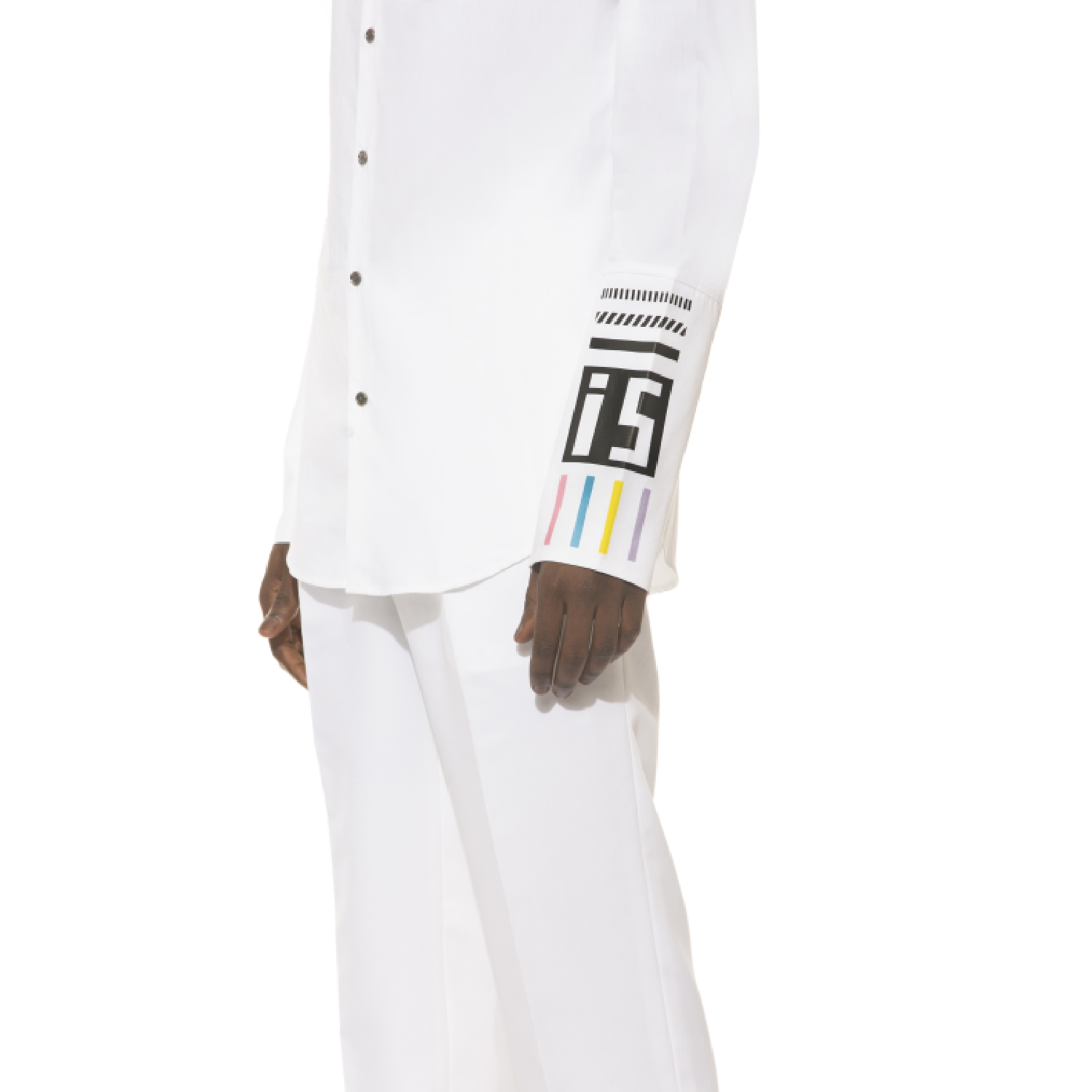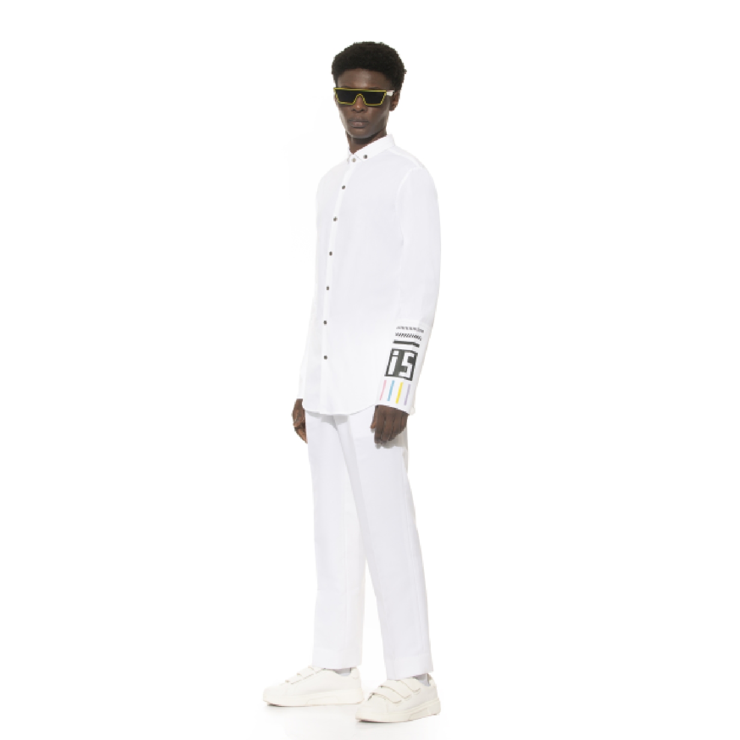 ₹ 8,500 (15% off)Crafted from comfortable cotton and tailored to a slim fit, this shirt offers comfort and a contemporary silhouette. The standout feature of this shirt is the exaggerated long cuff adorned with a high density print on the classic white base. The unique cuff design and intricate print enhances the visual appeal.