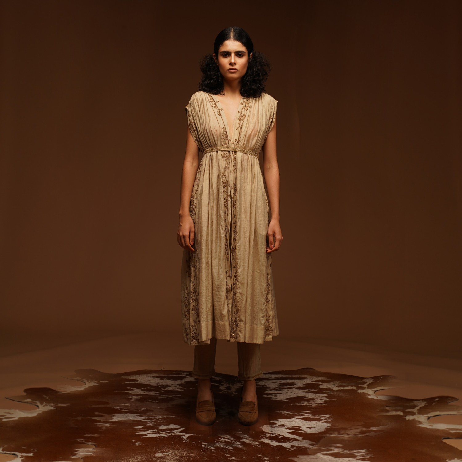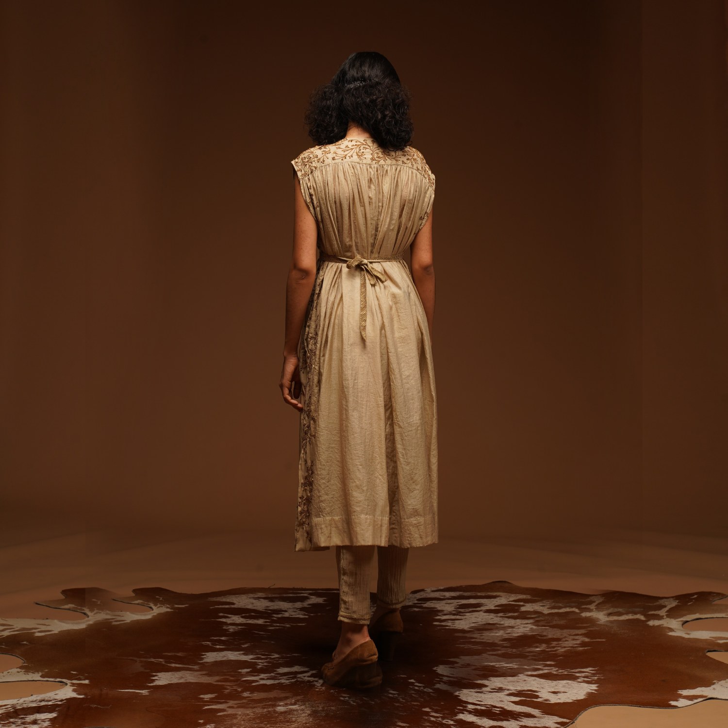 ₹ 23,075 (10% off)This hand-embroidered set features a jacket, bralette top, pants, and a coordinating belt. The full-front open jacket has aari and dabka flower details along the seam lines. Paired with the jacket, the pants have pockets and zardozi detailing at the bottom. Pair this outfit with minimal jewellery for a dressy evening event.