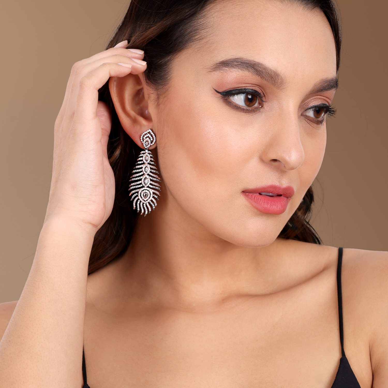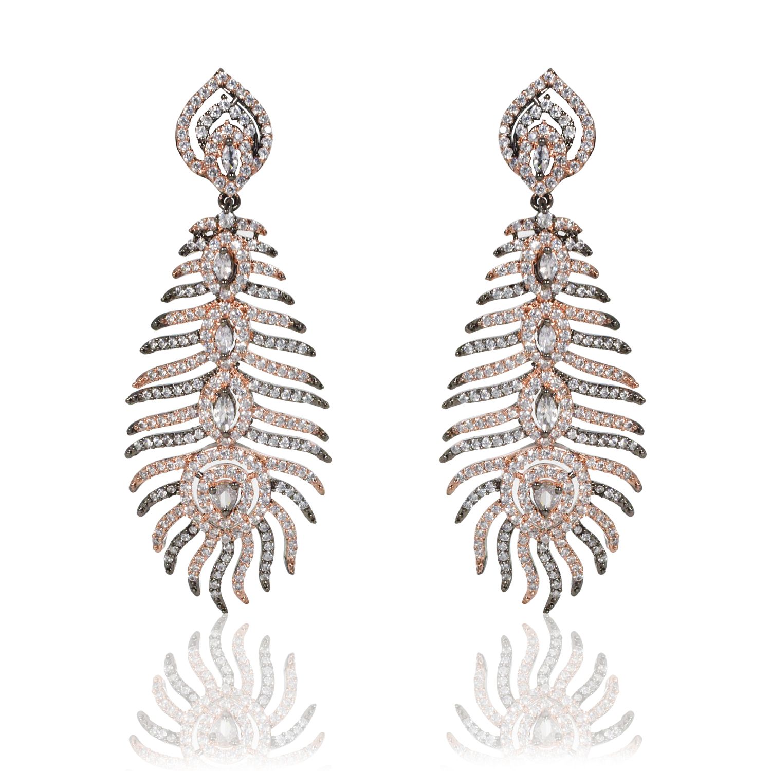 ₹ 4,050 (10% off)Experience the utmost sophistication with our breathtaking feather earrings, adorned in a flawless combination of rose gold and black rhodium and beautifully embellished with exquisite faux diamonds. With superior craftsmanship exhibited on a mixed metal foundation, these earrings epitomise pure opulence and refined fashion.