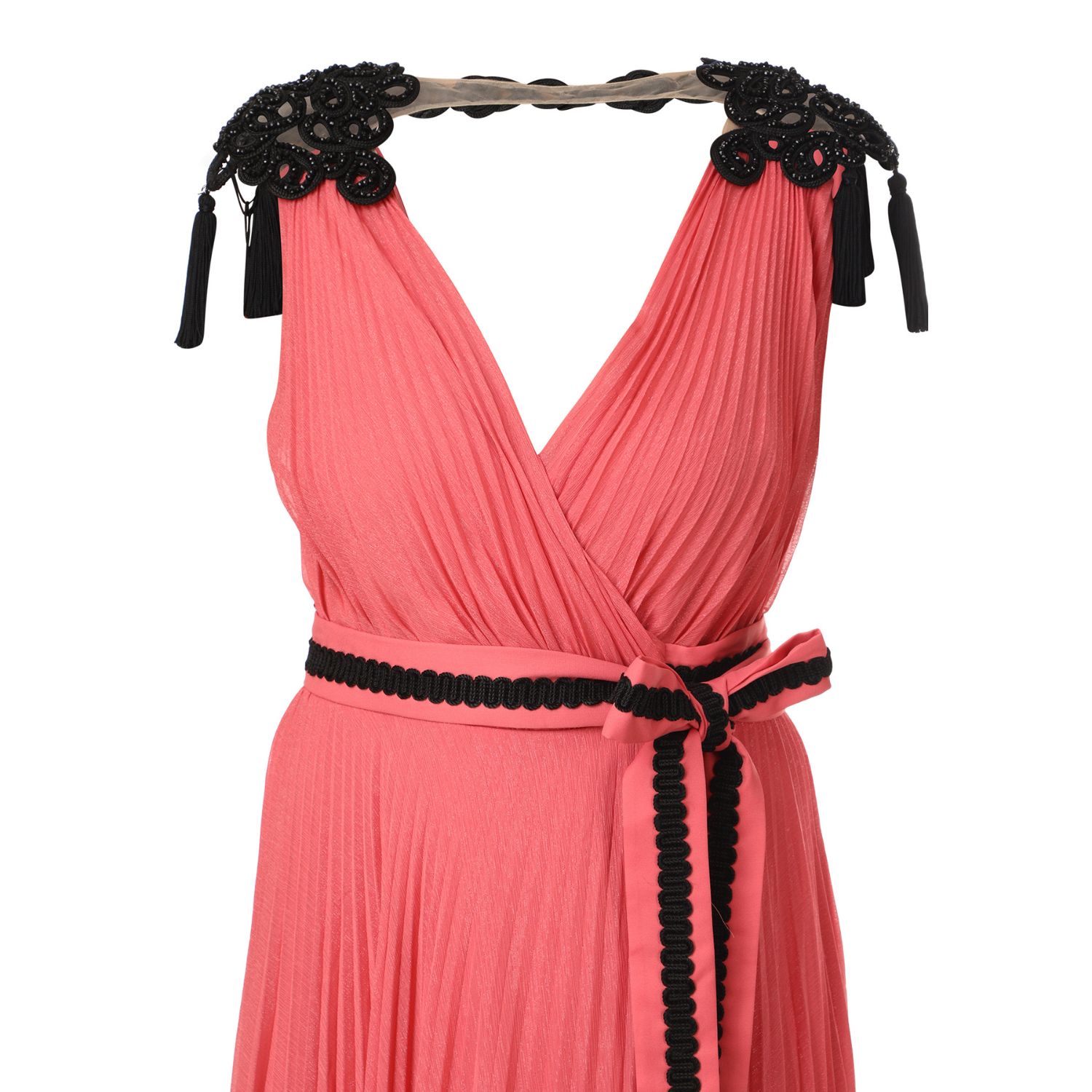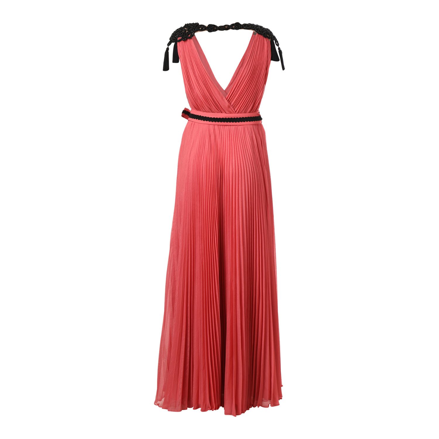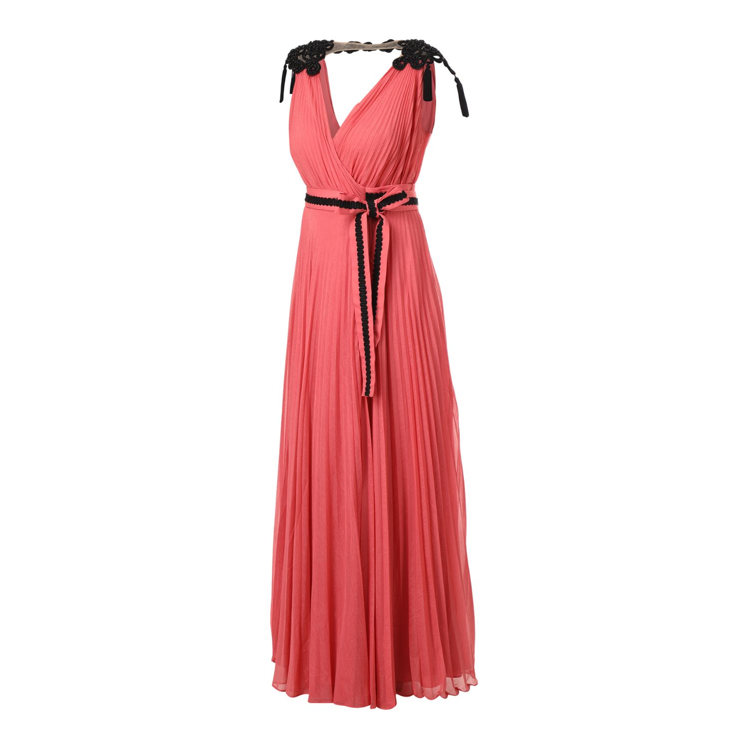 ₹ 20,160 (11% off)Any special event would look beautiful in this stunning salmon-pink wrap georgette gown with accordion pleats. The dramatic shoulder beadwork patch gives the dress some glitz, and the pleated skirt with a belt gives it a timeless appearance.