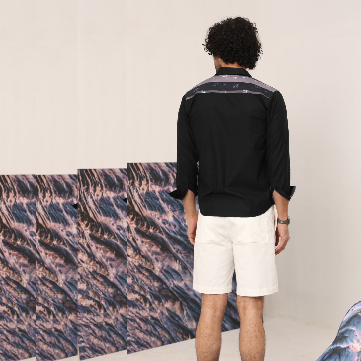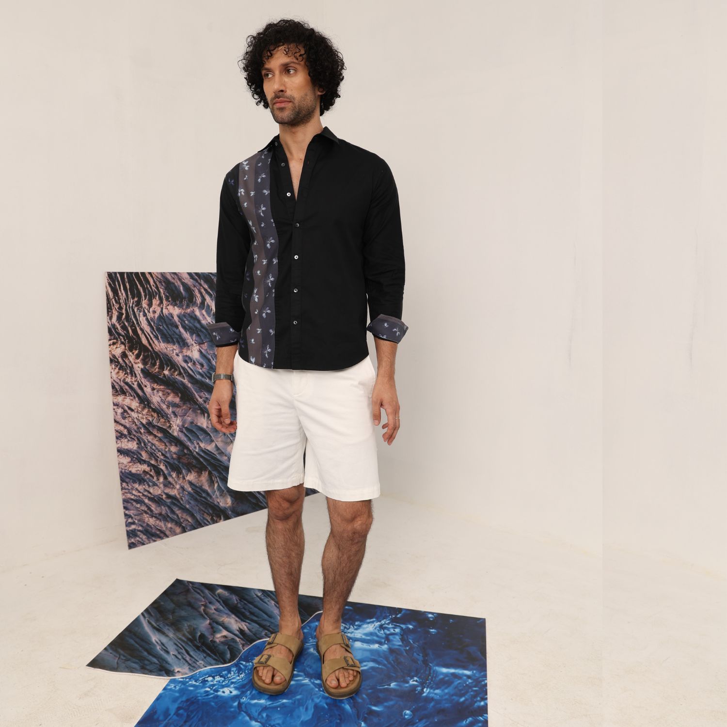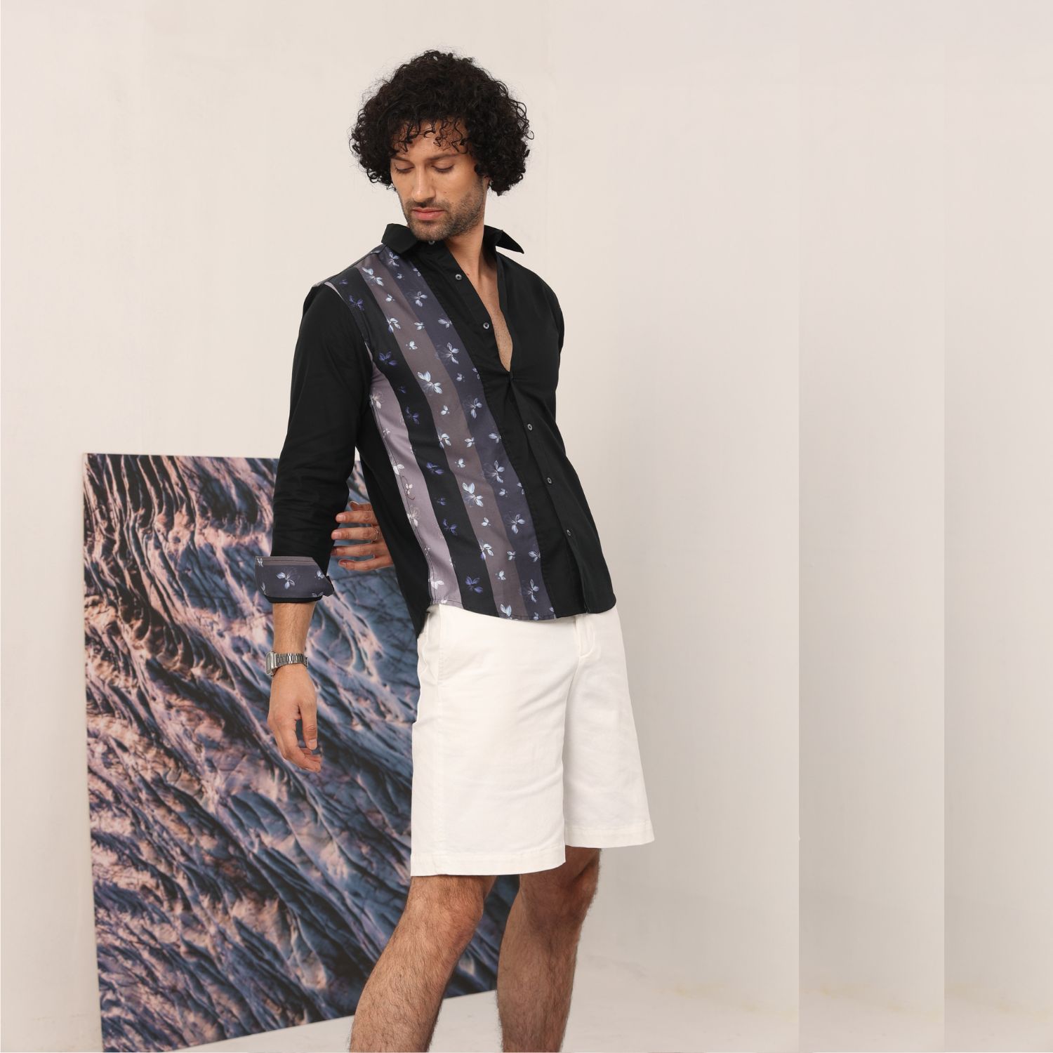 ₹ 3,000 (5% off)This sleek black shirt is adorned with a beautiful flower print on the right front, back yoke, and inside of the cuff, creating a unique and eye-catching design. Whether dressed up or dressed down, this collection is perfect for any occasion. Upgrade your style with this chic and stylish collection today!