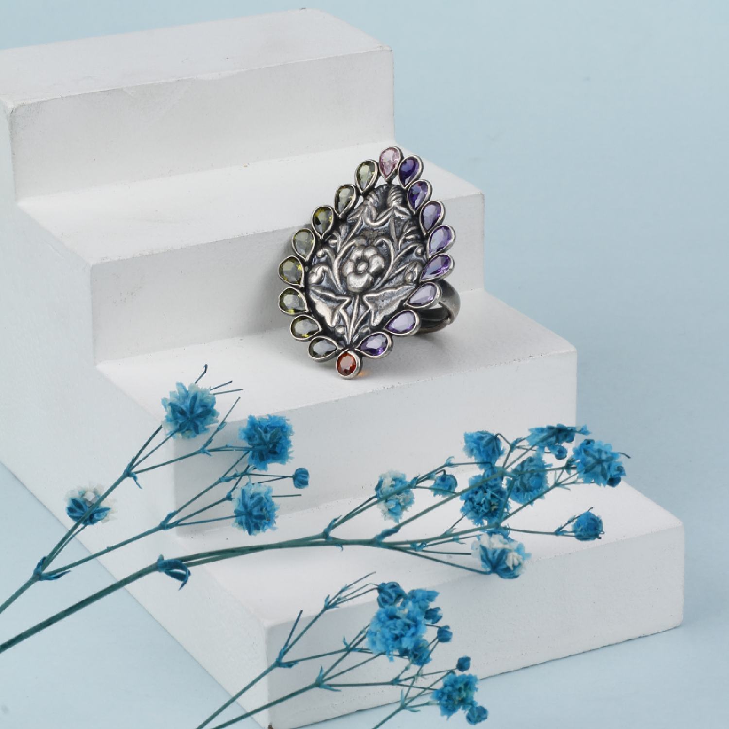 Crafted from silver and adorned with chalcedony stones, this ring exudes elegance. Its adjustable design ensures a comfortable fit for any finger, making it a versatile accessory that can effortlessly enhance your style on any occasion.