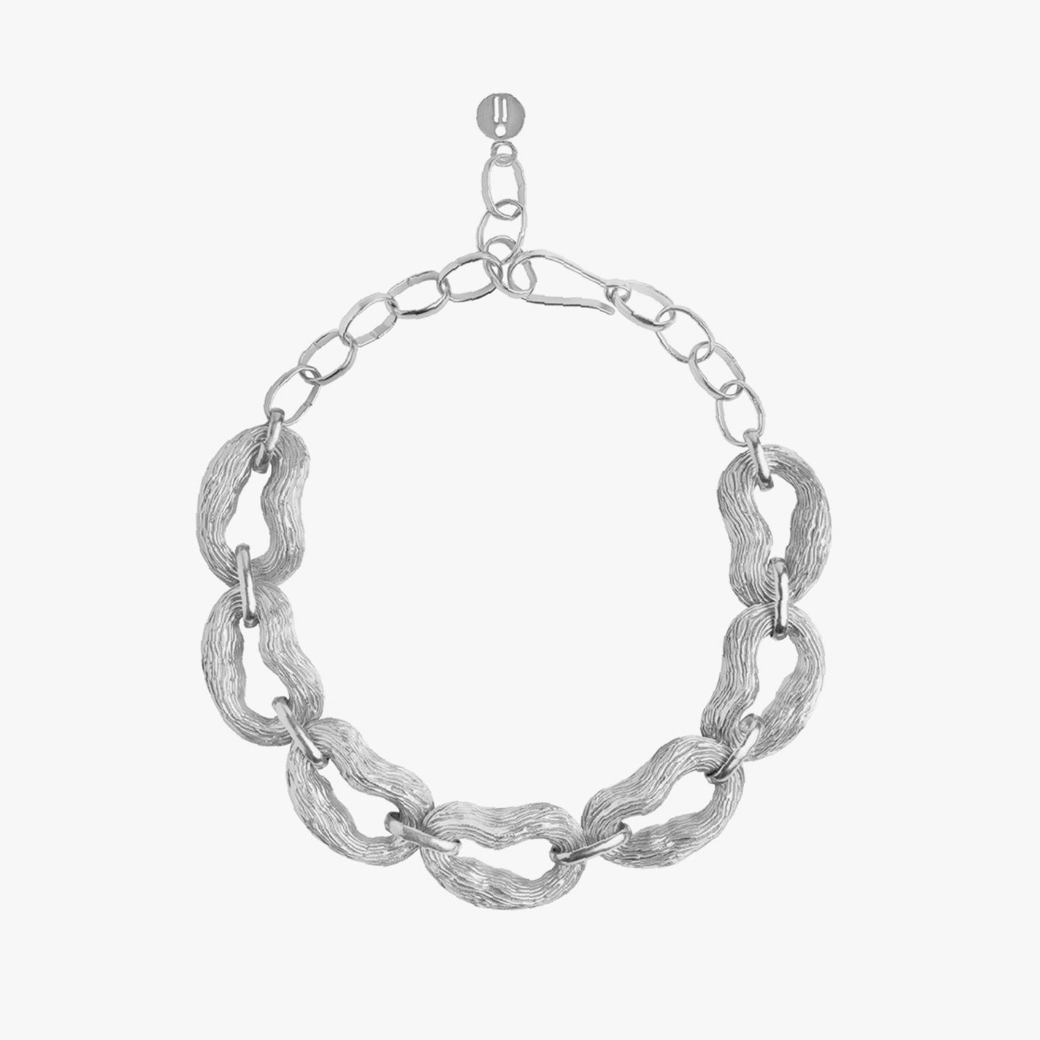Experience the essence of wood and the forest with this chunky contemporary link necklace. It serves as an ode to the captivating textures found in nature. For a modern high fashion ensemble, pair it with our knotty link necklace or knotty pine earrings, elevating your style with a touch of natural beauty.