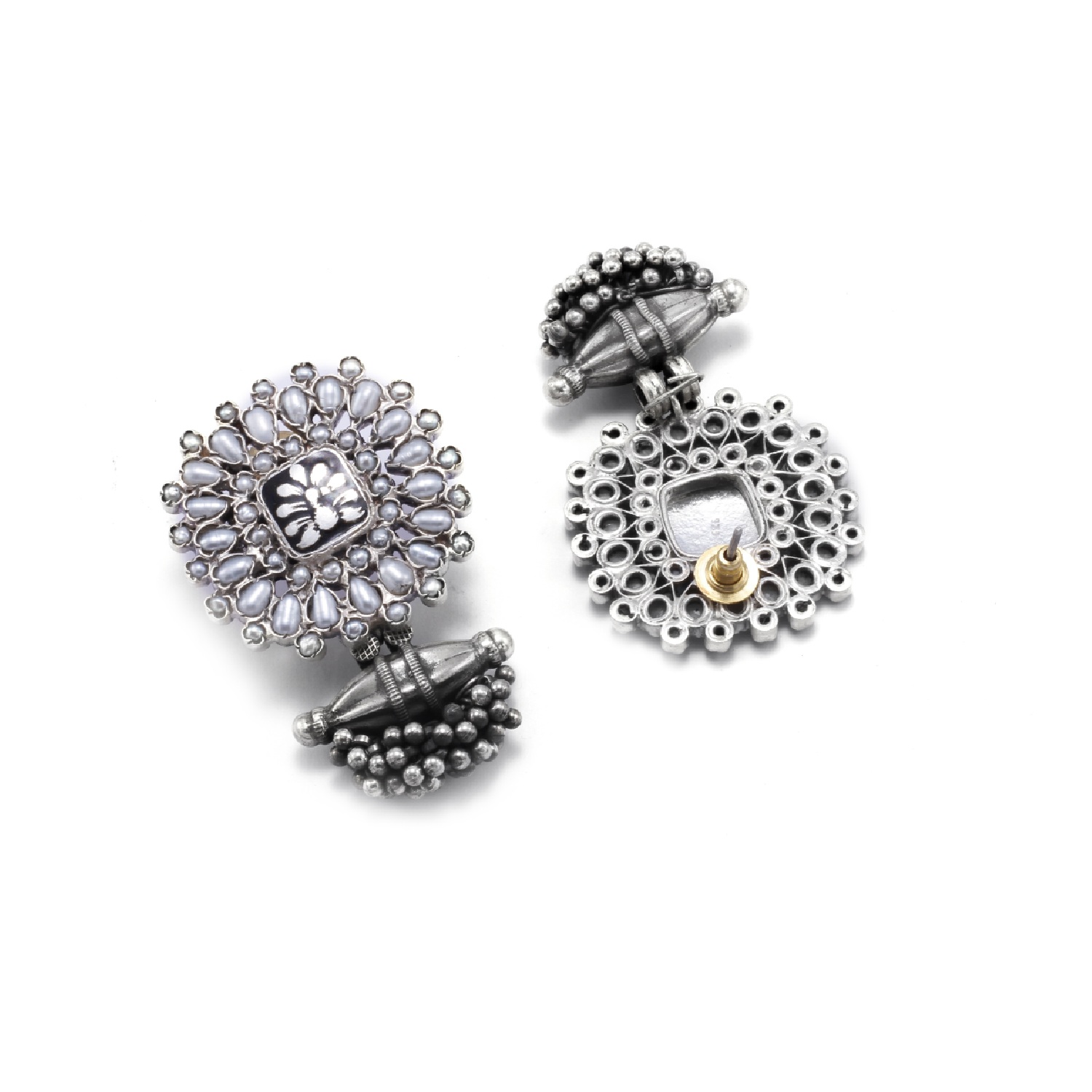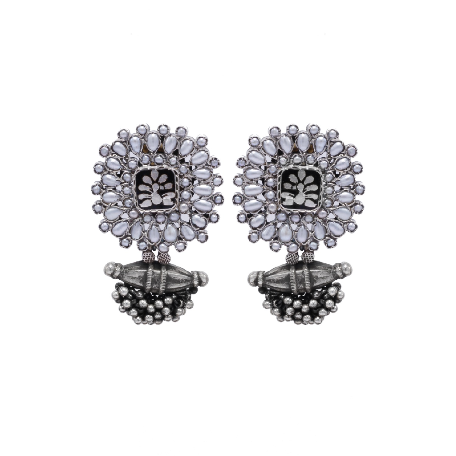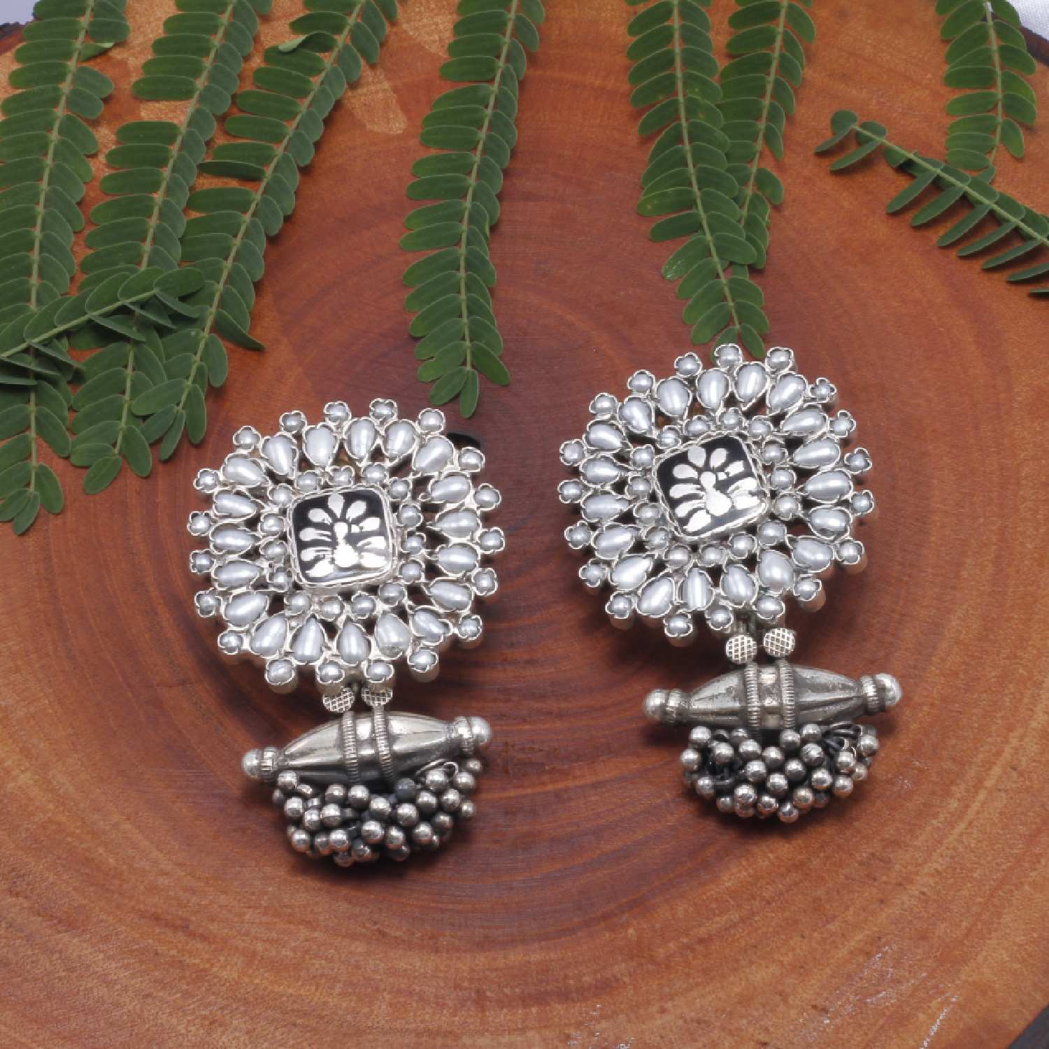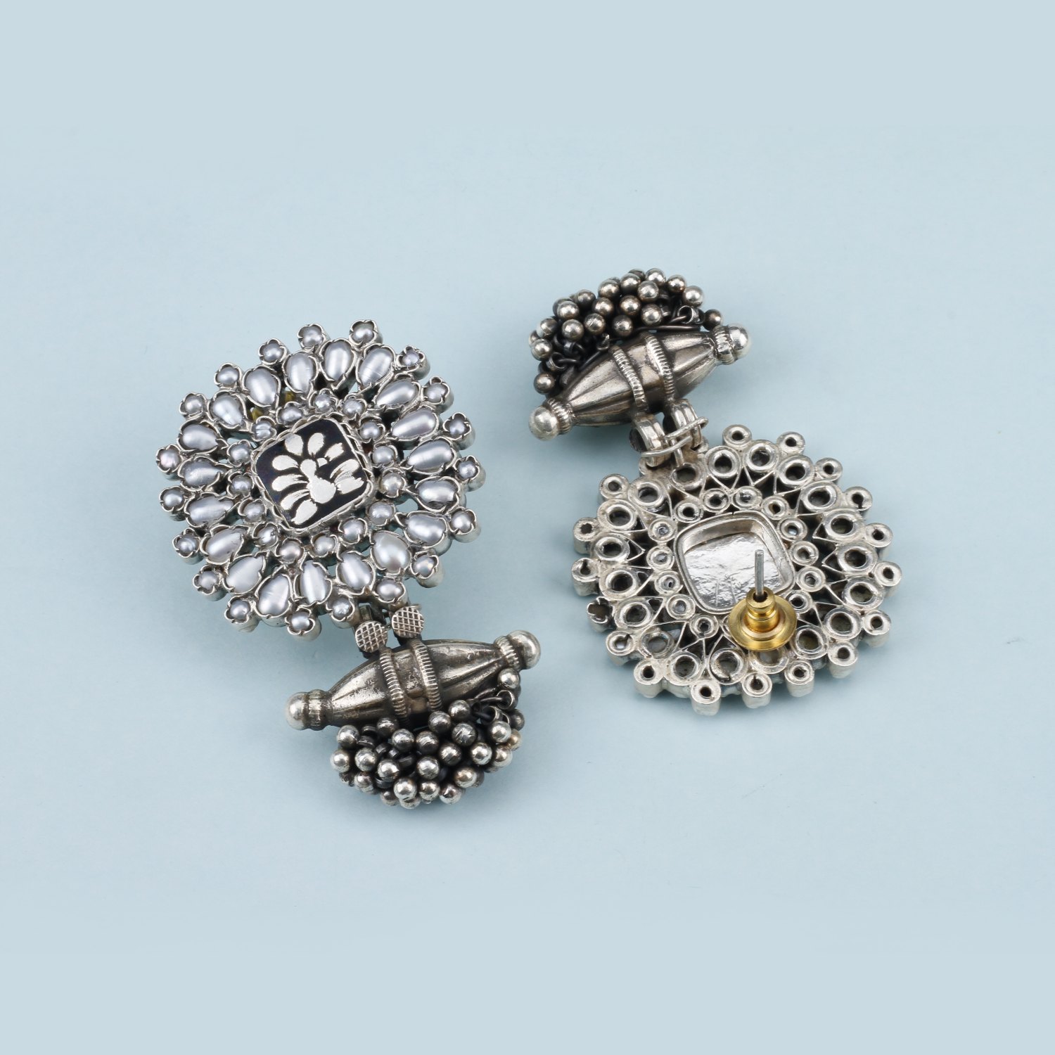 These exquisite earrings are handcrafted with precision. They combine the beauty of silver and pearl elements to create a stunning accessory that complements any outfit with grace. Perfect for gifting, these elegant earrings hold the potential to become a cherished keepsake for your loved ones.