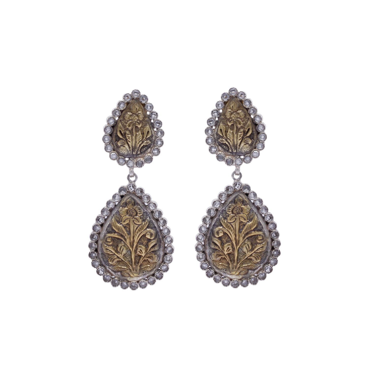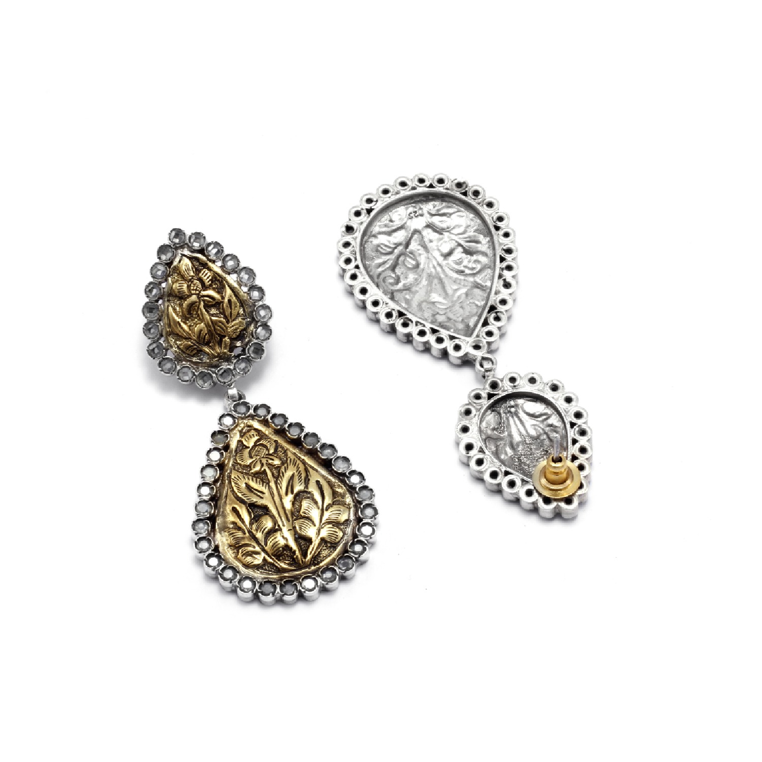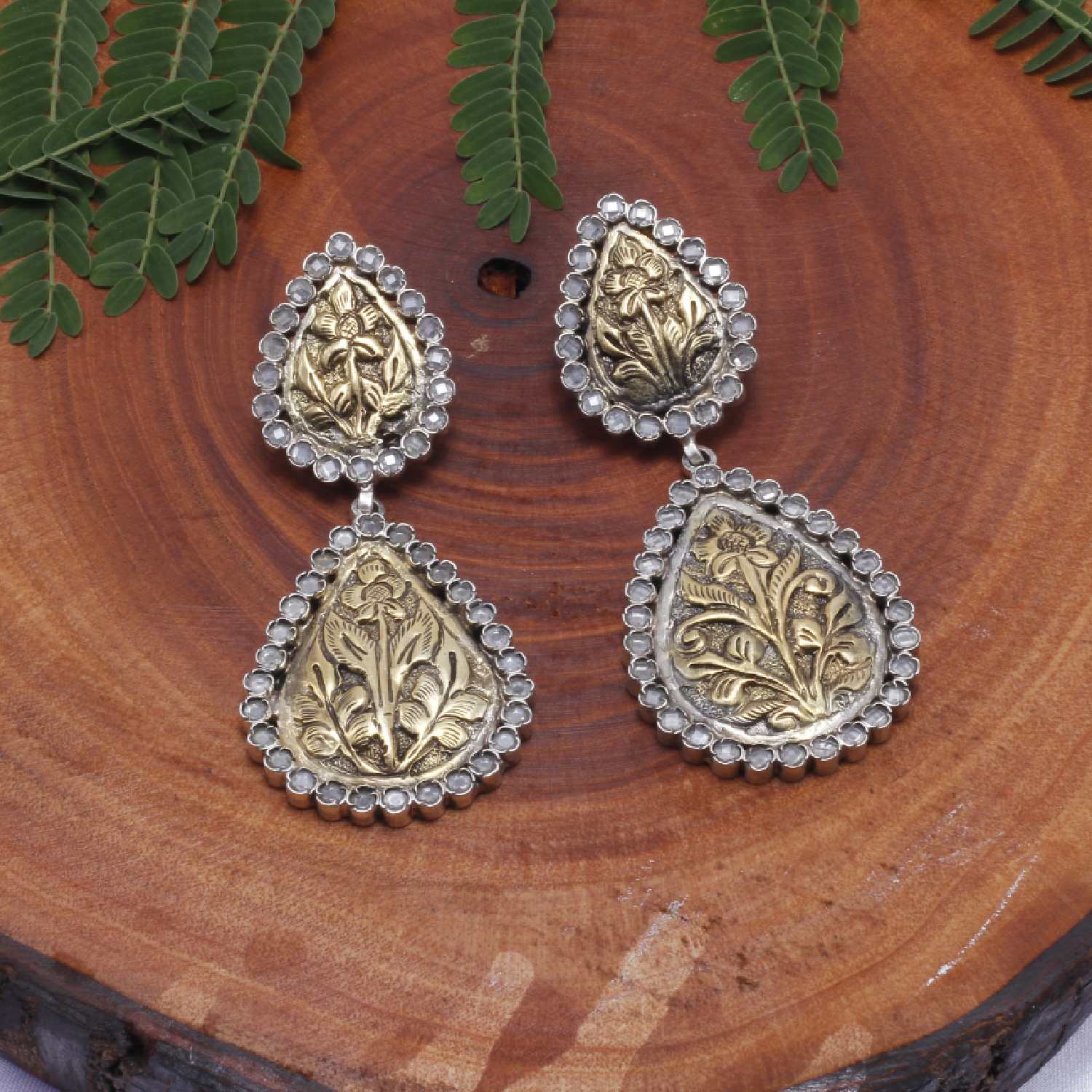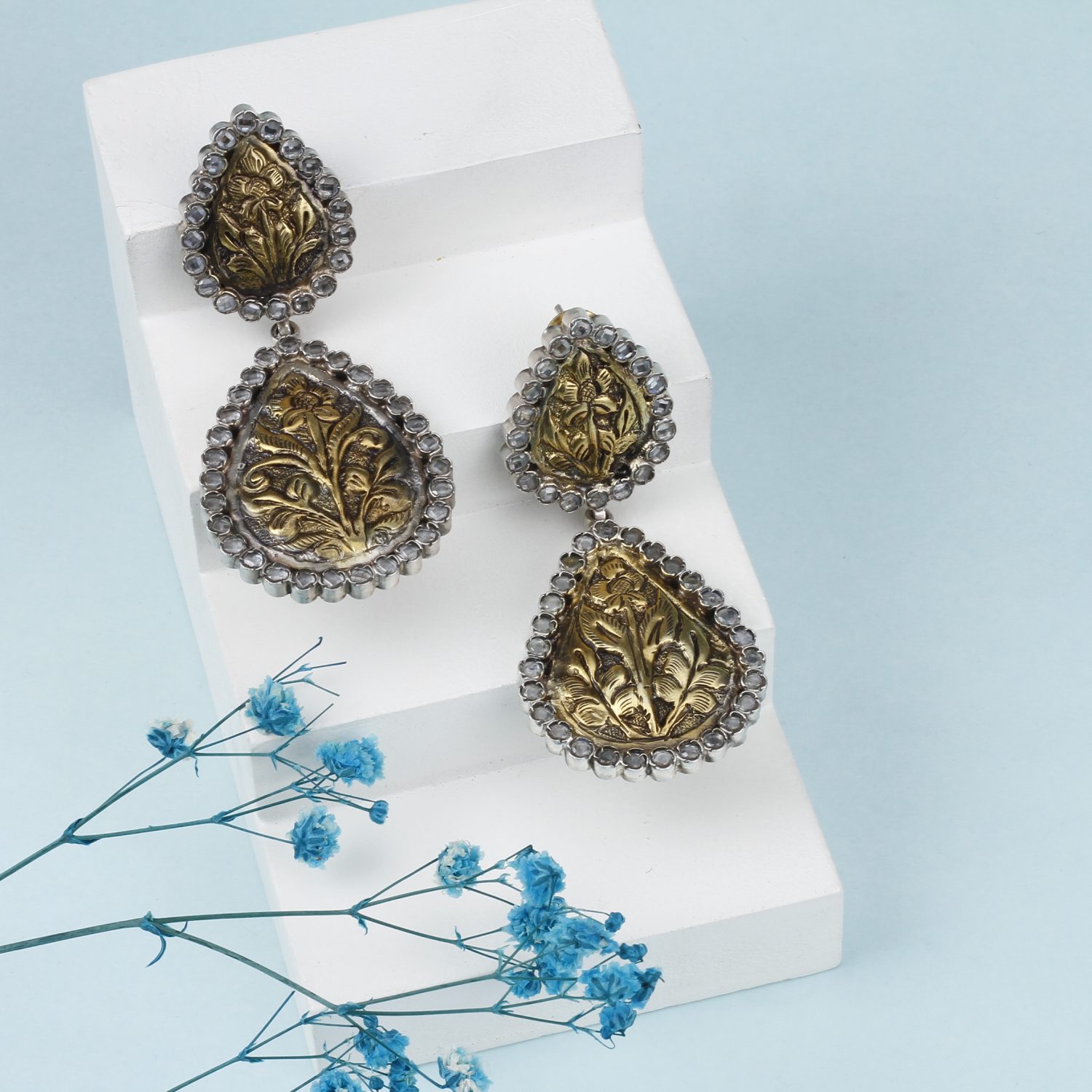 Upgrade your style with these beautiful earrings that are meticulously engraved and handcrafted in exquisite silver. The addition of a 24K gold plated finish adds opulence. Style them with traditional outfits for weddings or festivities.