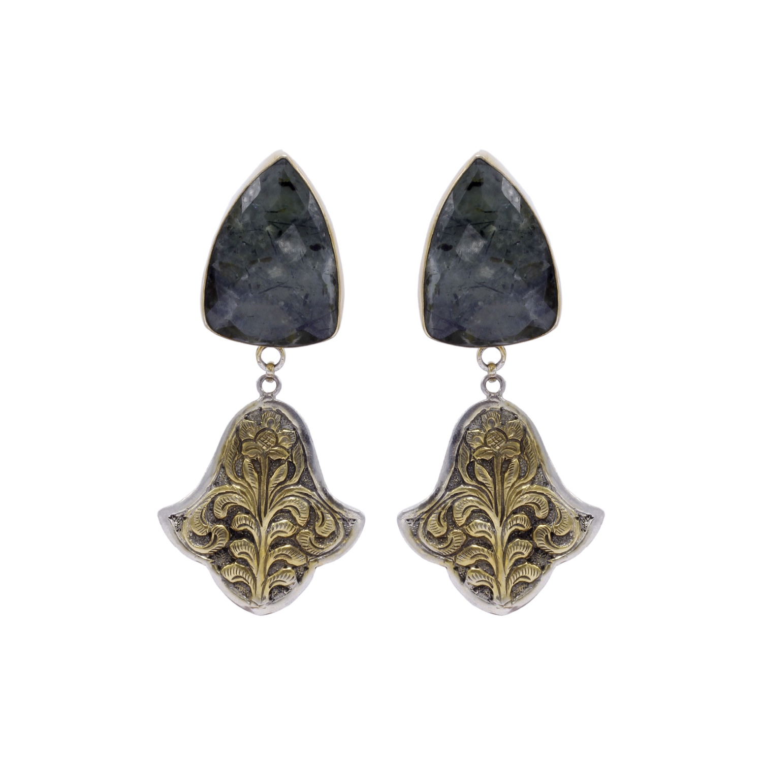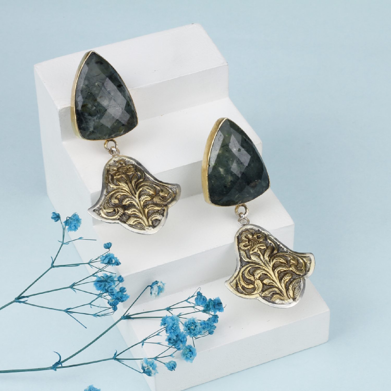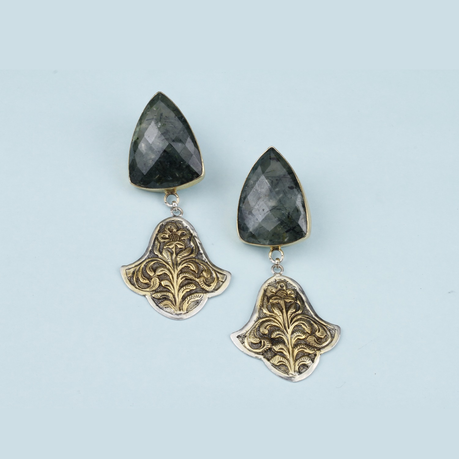 The elegant design of these earrings make them a versatile choice for various occasions. These silver earrings feature intricate engravings that highlight the meticulous craftsmanship. Handcrafted with precision and adorned with a luxurious 24K gold plated finish, these earrings offer opulence to the look.