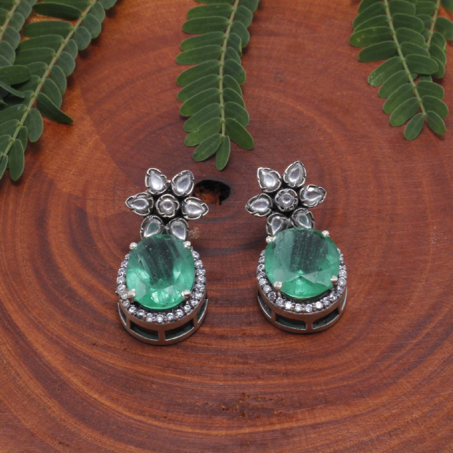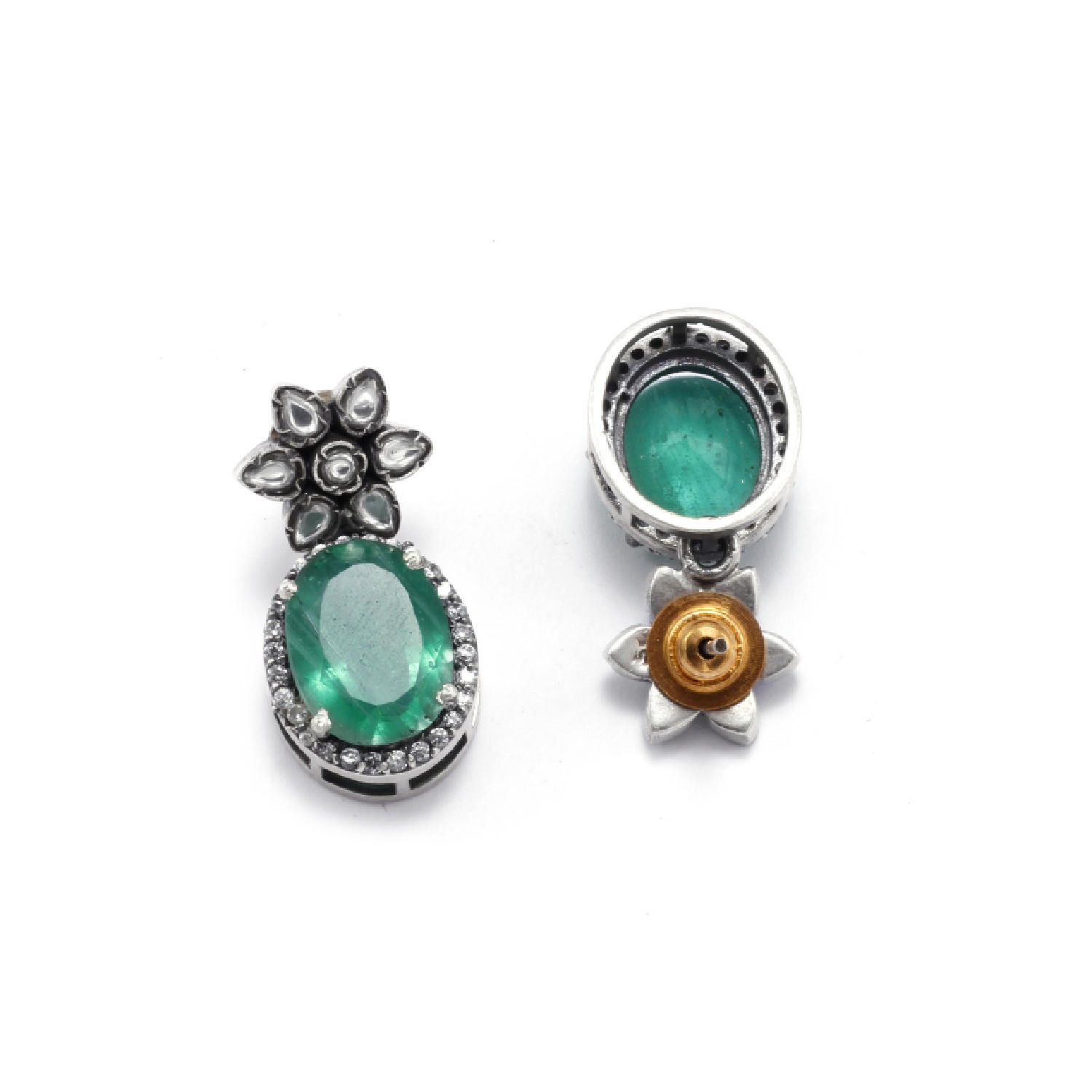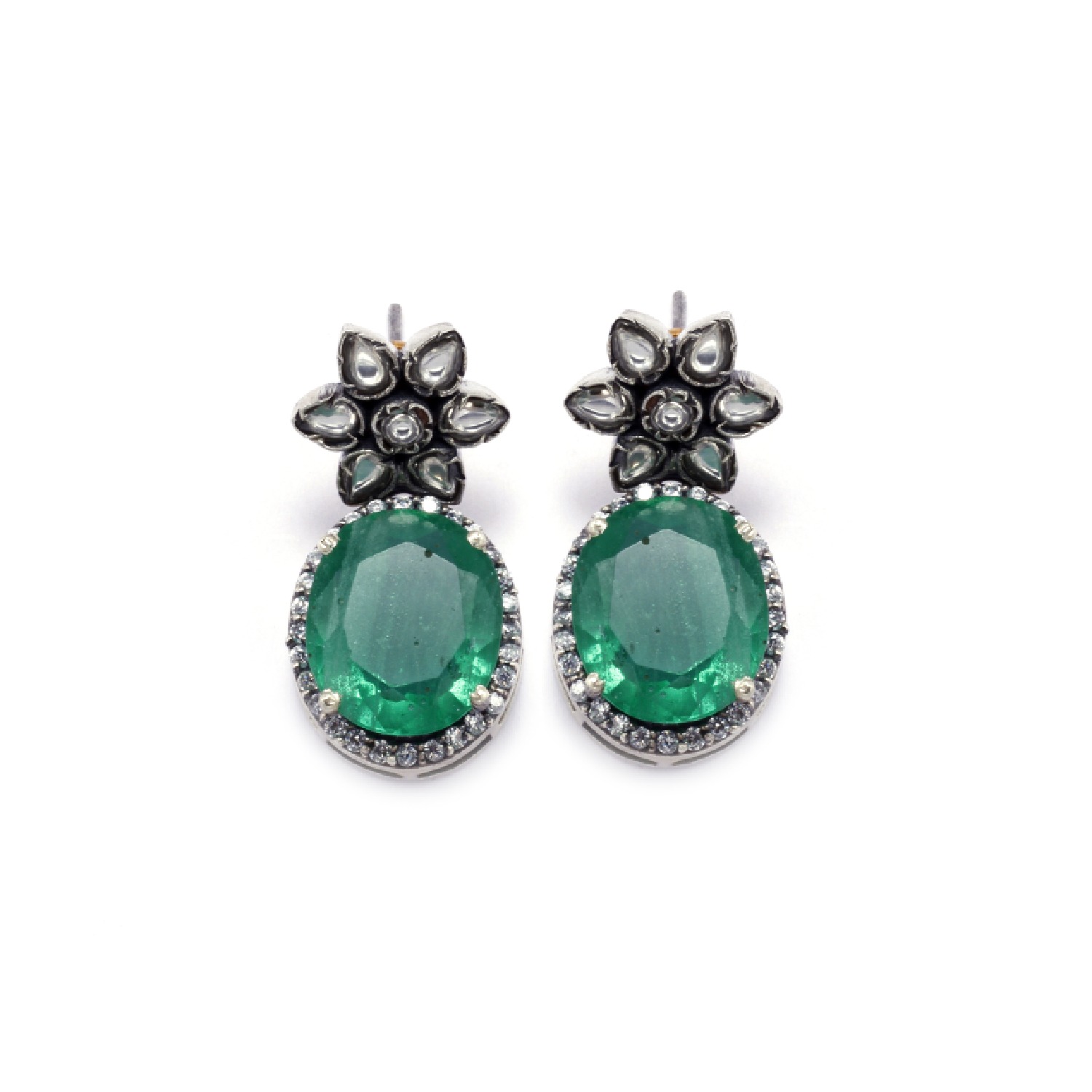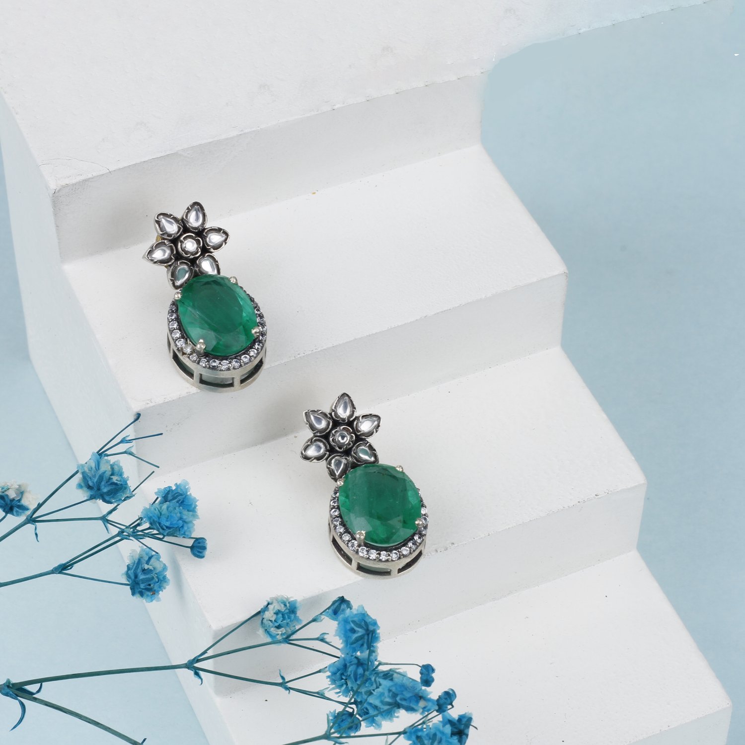 These stunning floral earrings are meticulously crafted in silver and showcase a stunning floral motif that adds femininity to your ensemble. The addition of green onyx stones enhance the allure of these earrings, infusing them with a pop of color.