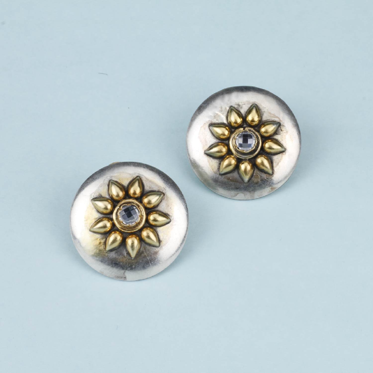 These gorgeous earrings feature a central flower motif, radiating charm and elegance. Crafted from silver and adorned with intricate kundan detailing, they effortlessly capture the essence of traditional and contemporary aesthetics. Pair them with a dress or kurta for a dressy daytime event.