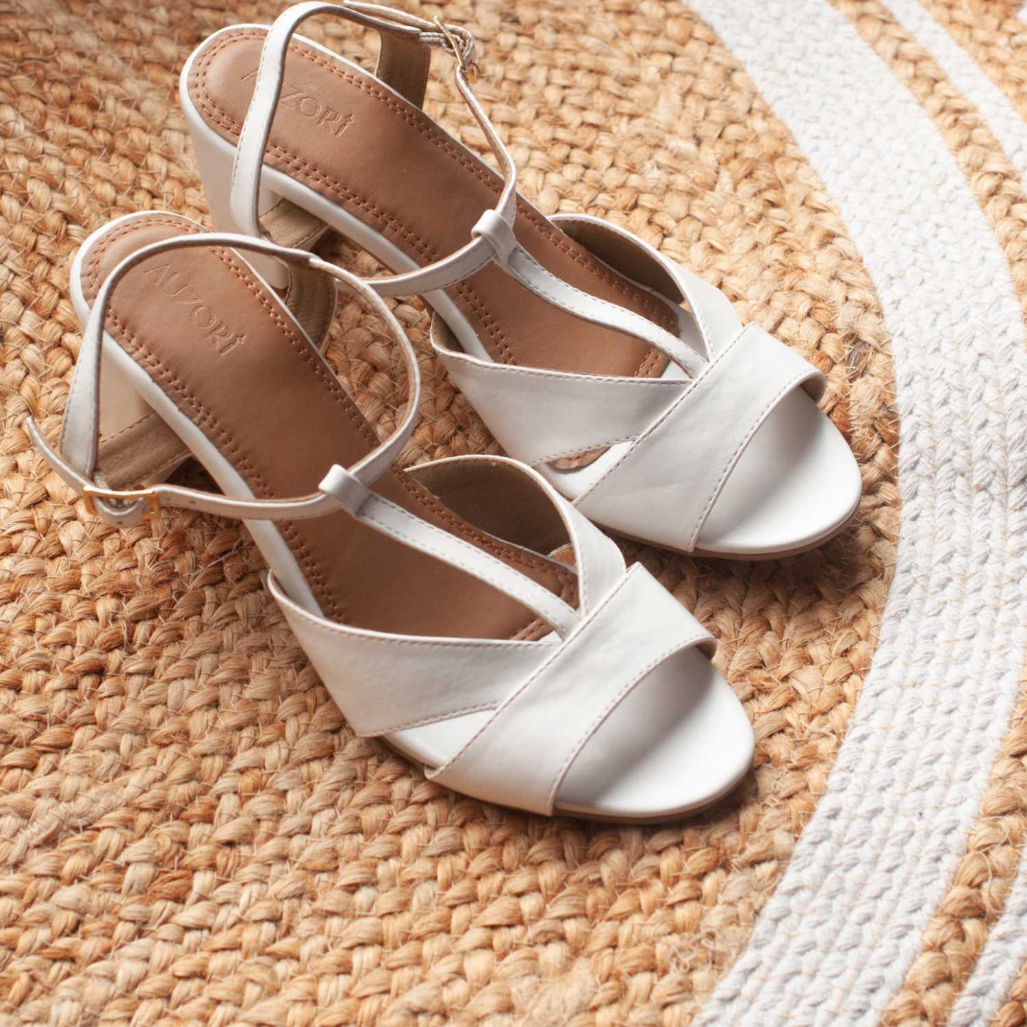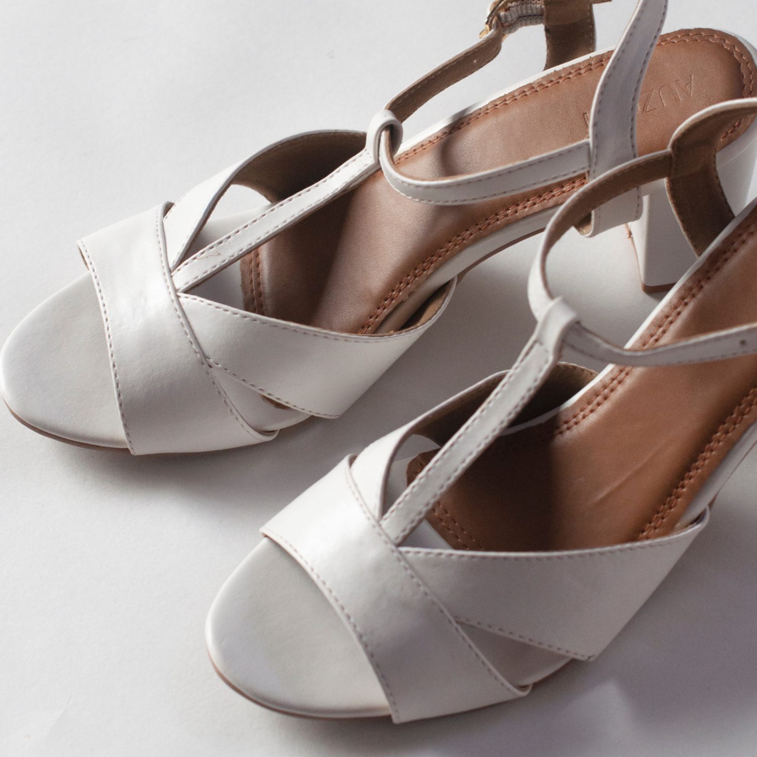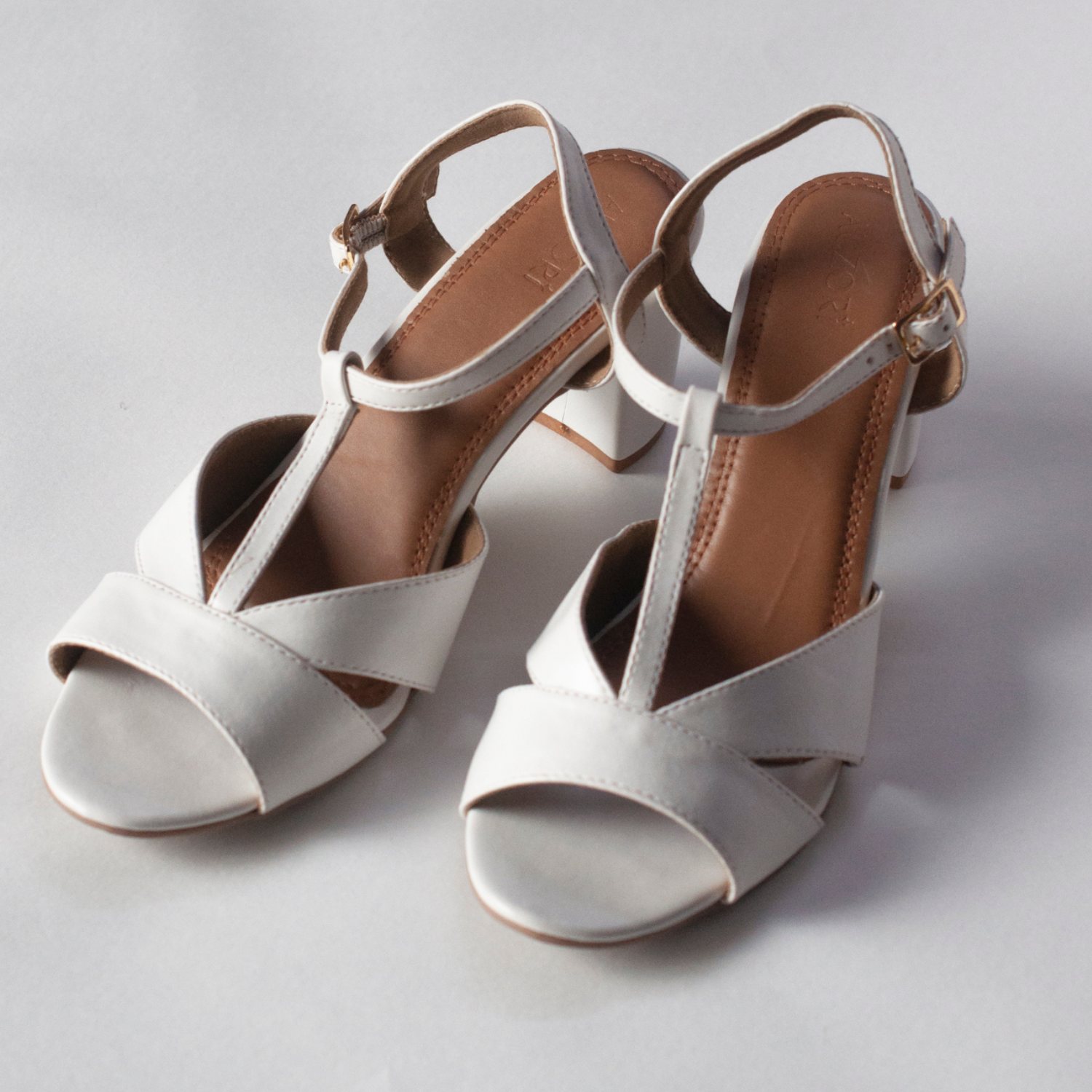 Crafted from high-quality faux leather with exquisite foiling, these block heels come in a classic white color. They feature chunky straps and a convenient back strap for style and comfort. Style them with a gown and a sling bag for special occasions.