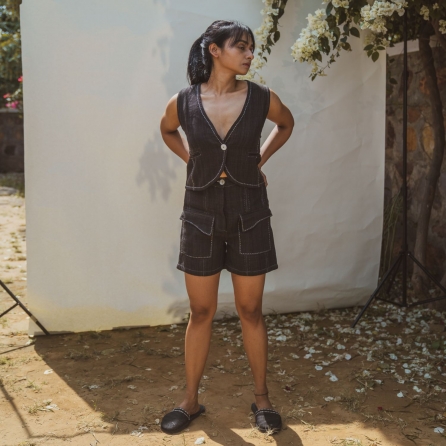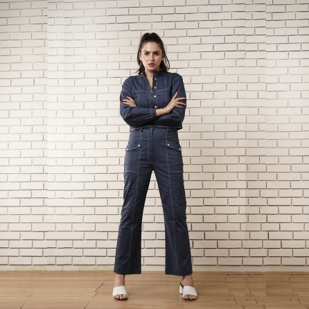 Step into elegance with this three-piece coordinating set featuring a pleated corset adorned with lined cups, high-waisted straight pants, and a full sleeve shirt highlighting bell sleeves. The ensemble is elevated with a captivating digitally printed design seamlessly blending modern aesthetics with timeless sophistication for a chic and versatile fashion statement.