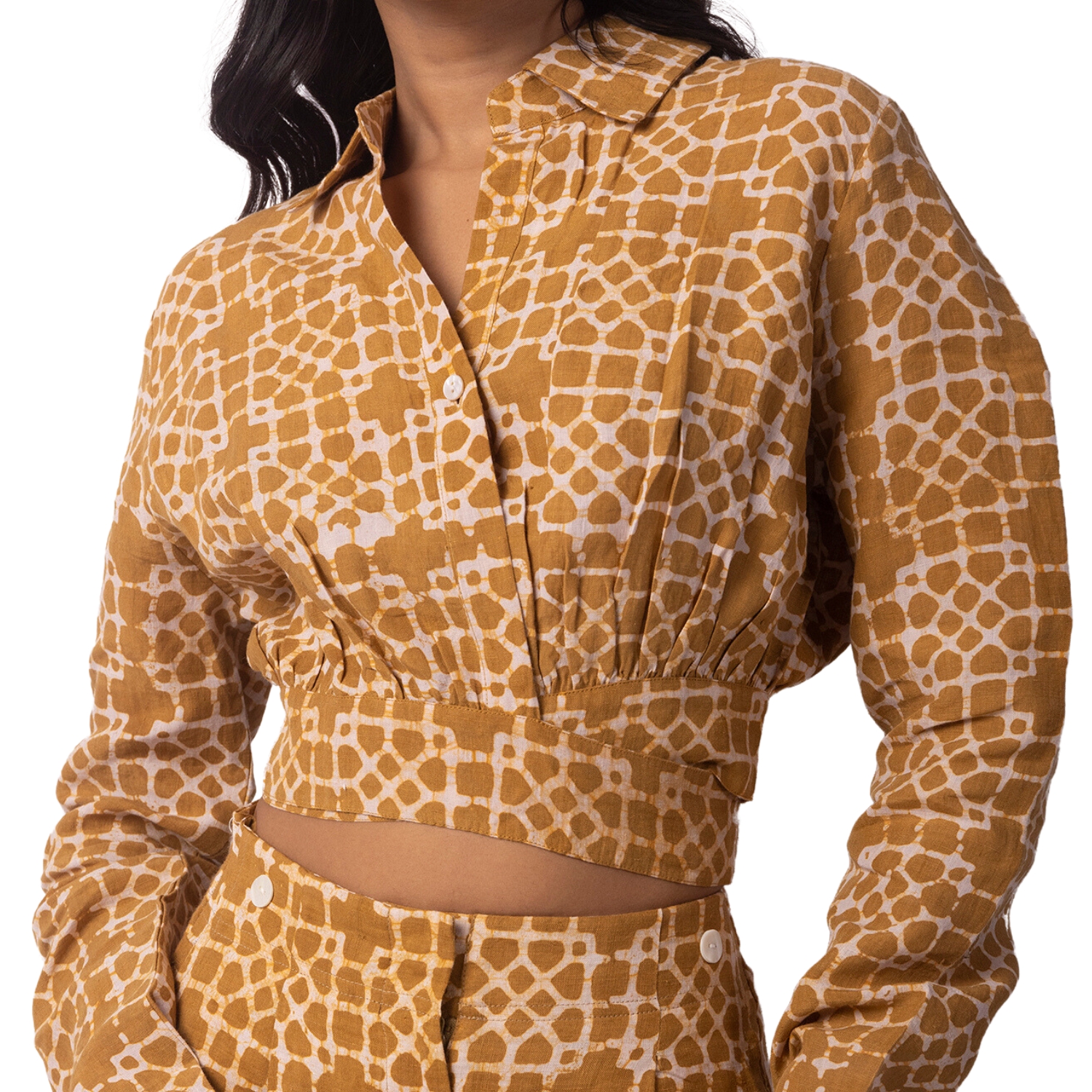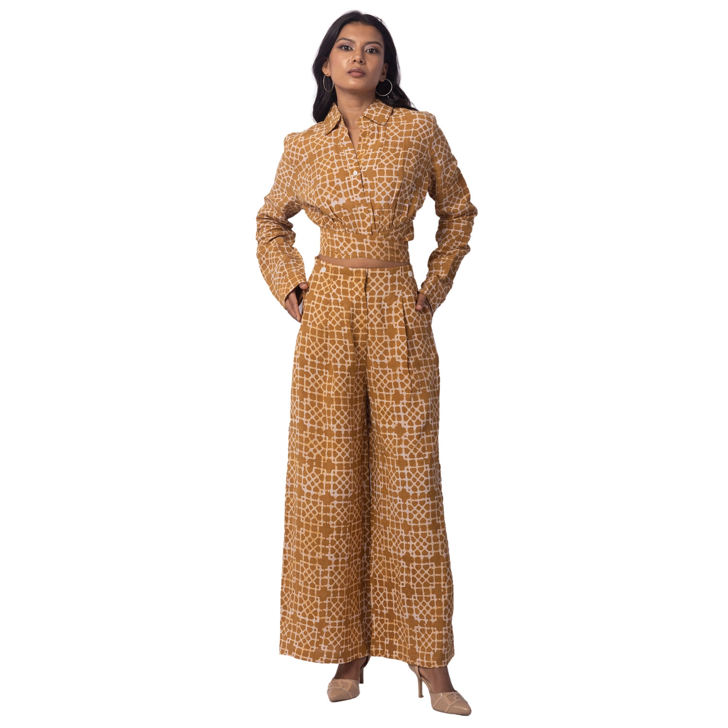 ₹ 16,098 (5% off)Upgrade your wardrobe with this versatile and chic ensemble that effortlessly combines fashion-forward design with desired comfort. The yellow batik print is the statement feature of this outfit. This set features a stylish shirt and wide-leg pants meticulously tailored from premium cotton linen fabric.