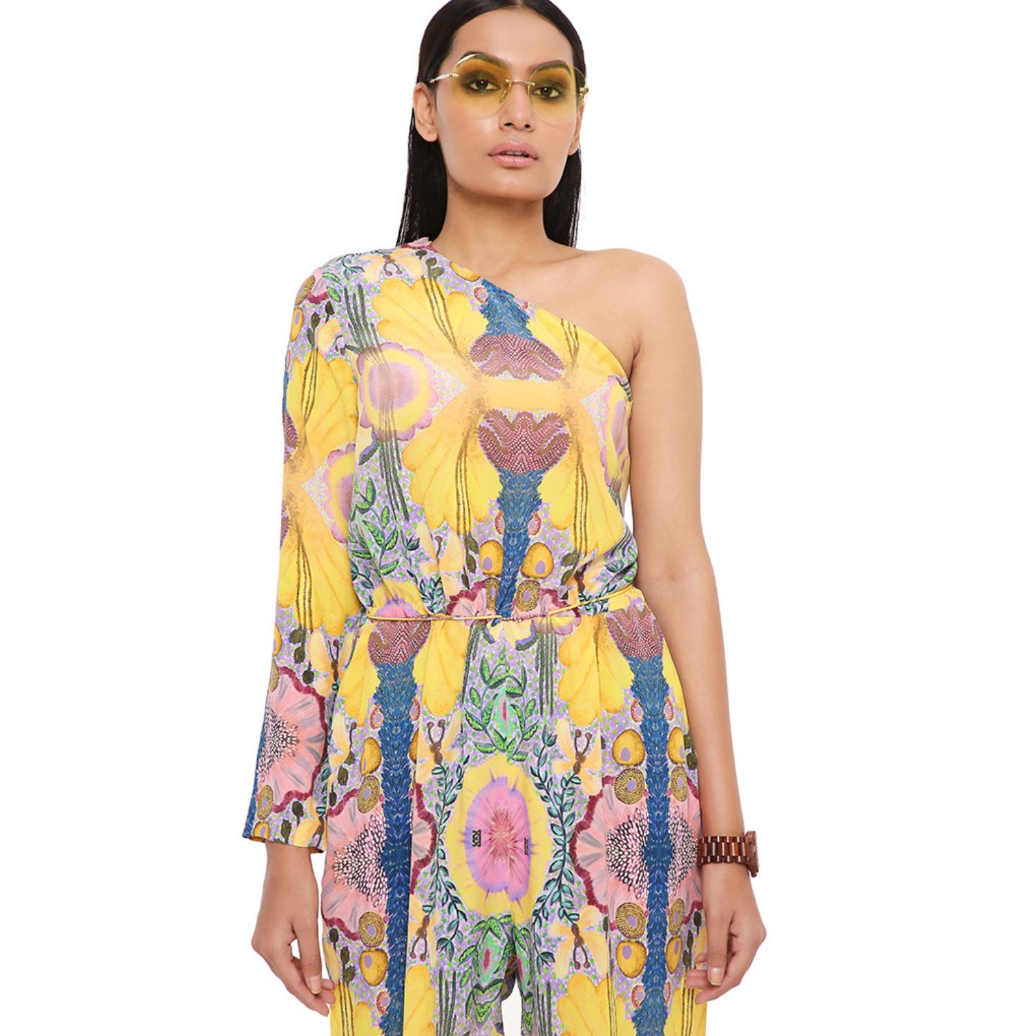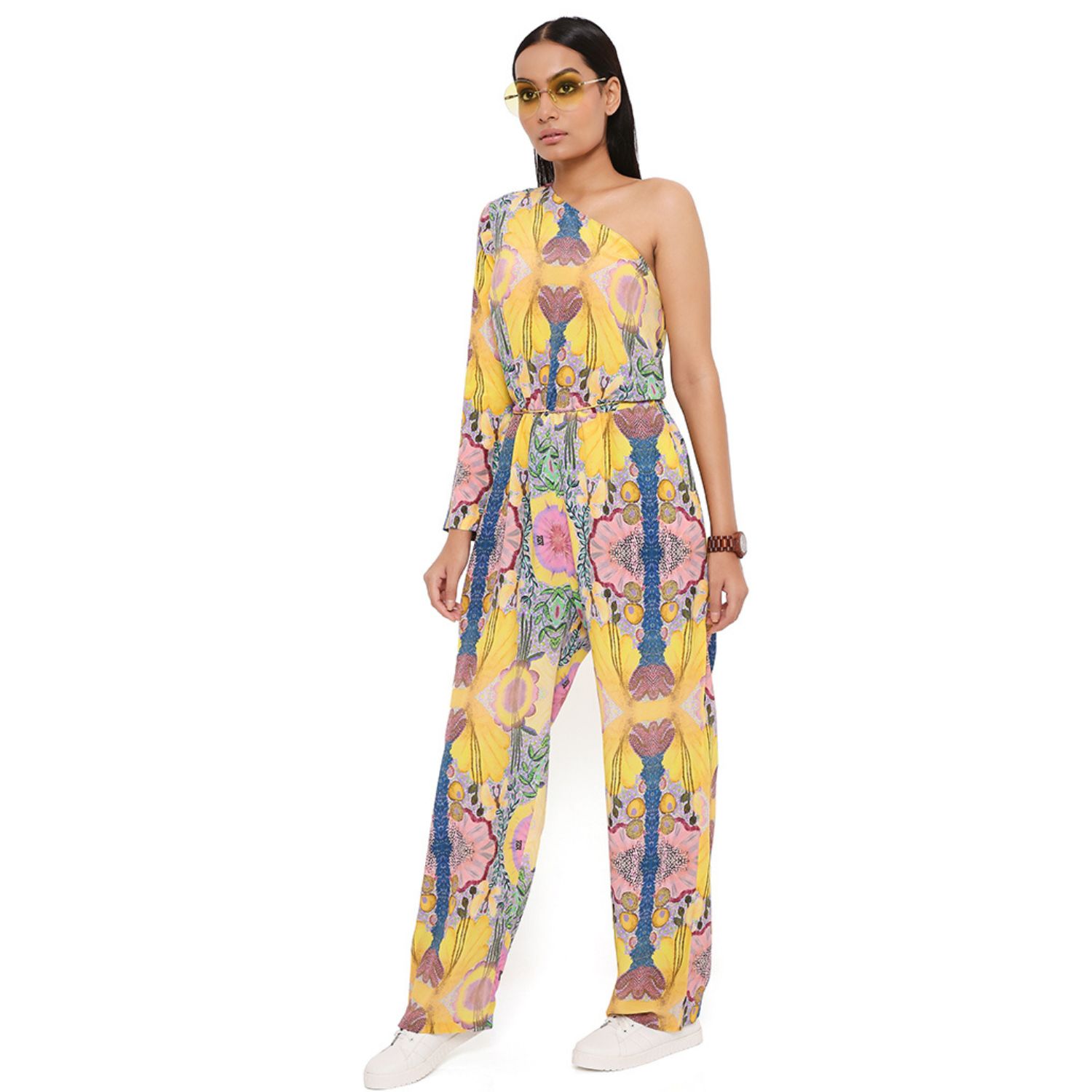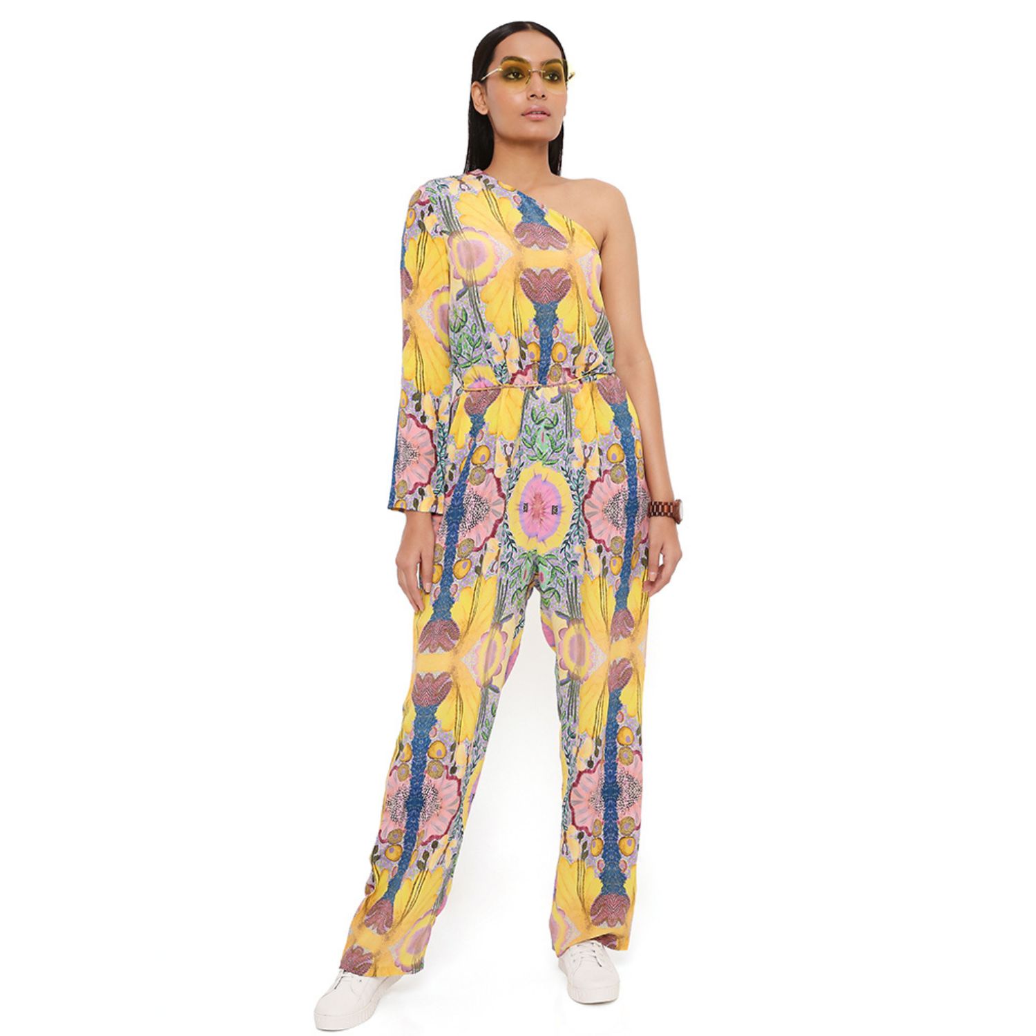 Buy Yellow Enchanted Print Crepe Jumpsuit For Women | Indyverse